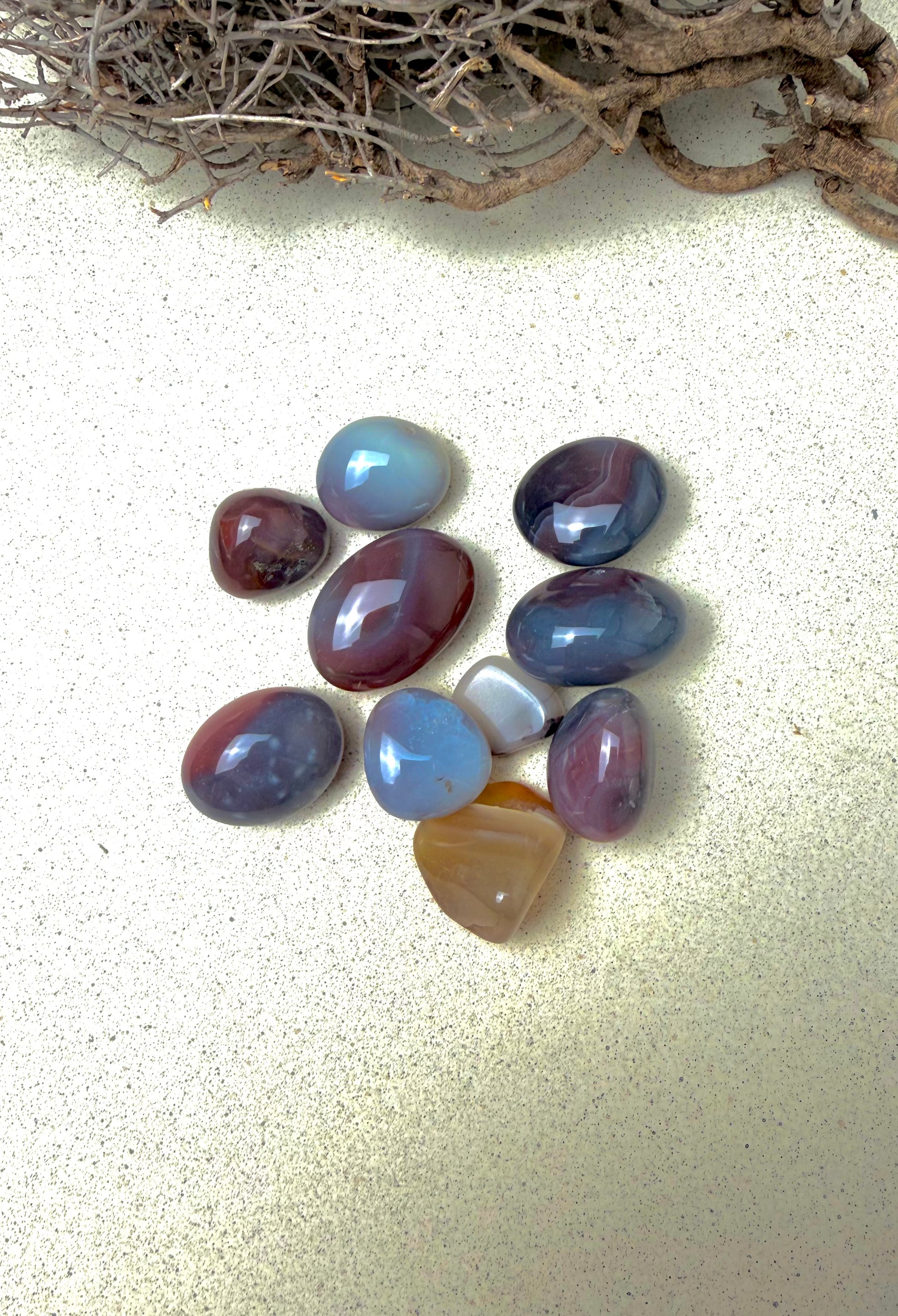 Der Achat ist ein kraftvoller Schutzstein, der für innere Stabilität, Ausgleich und Harmonie sorgt. Er stärkt das Selbstvertrauen und hilft, Ängste zu lösen. Seine sanfte Energie fördert Klarheit und Selbstreflexion, wodurch Herausforderungen mit Ruhe und Geduld gemeistert werden können. Zudem unterstützt der Achat die emotionale Heilung und wirkt erdend, indem er eine tiefe Verbindung zur Natur herstellt. Ein idealer Begleiter für Meditation und spirituelle Entwicklung.