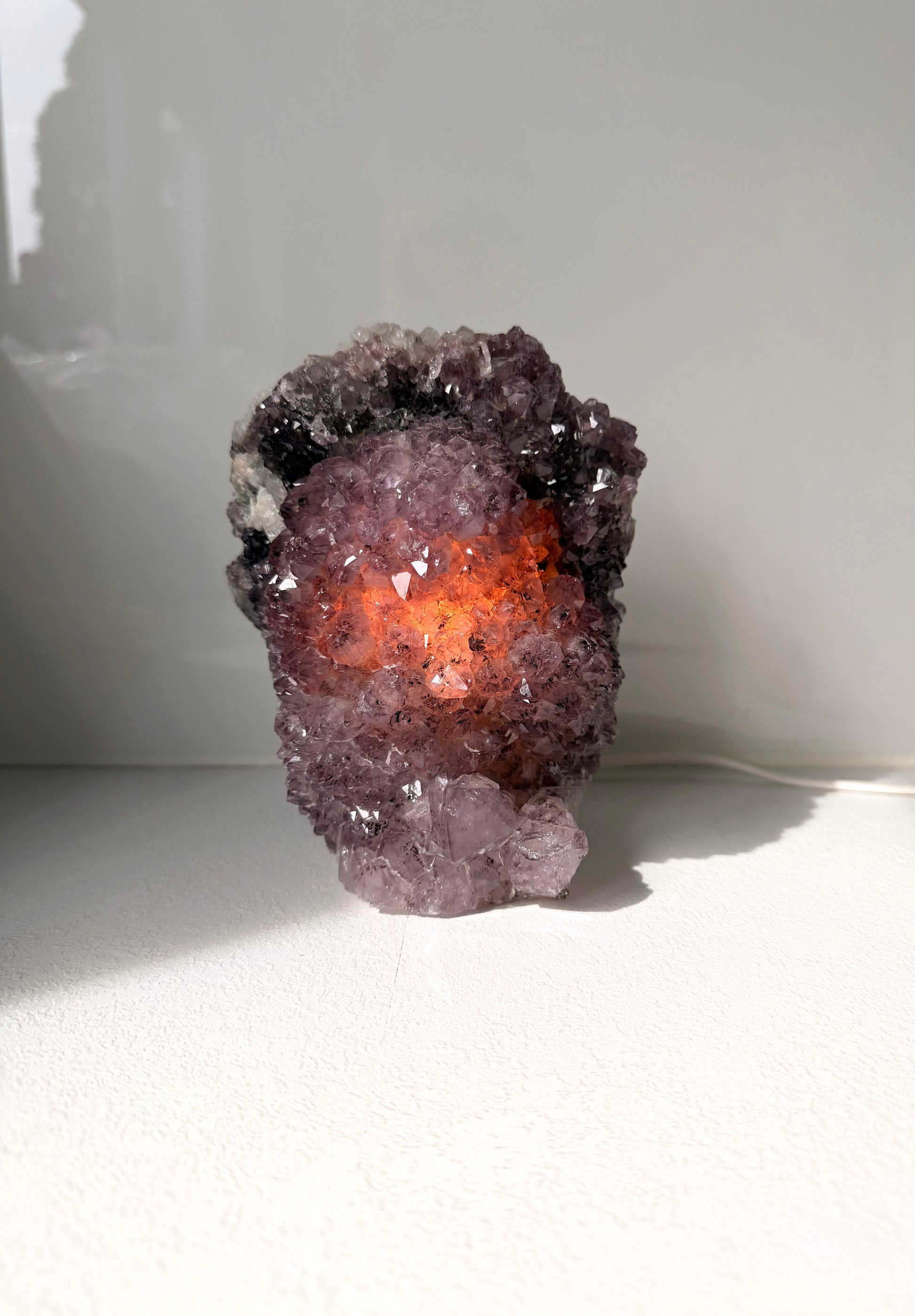 Amethyst steht für Klarheit, Schutz und innere Ruhe. Als Lampe verbreitet er nicht nur Licht, sondern auch eine beruhigende, klärende Energie – ideal fürs Schlafzimmer, den Meditationsraum oder als besonderer Wohnakzent.