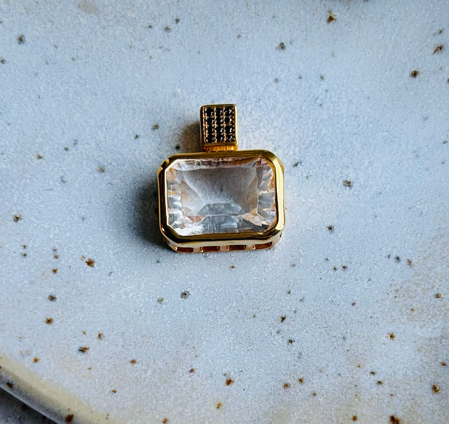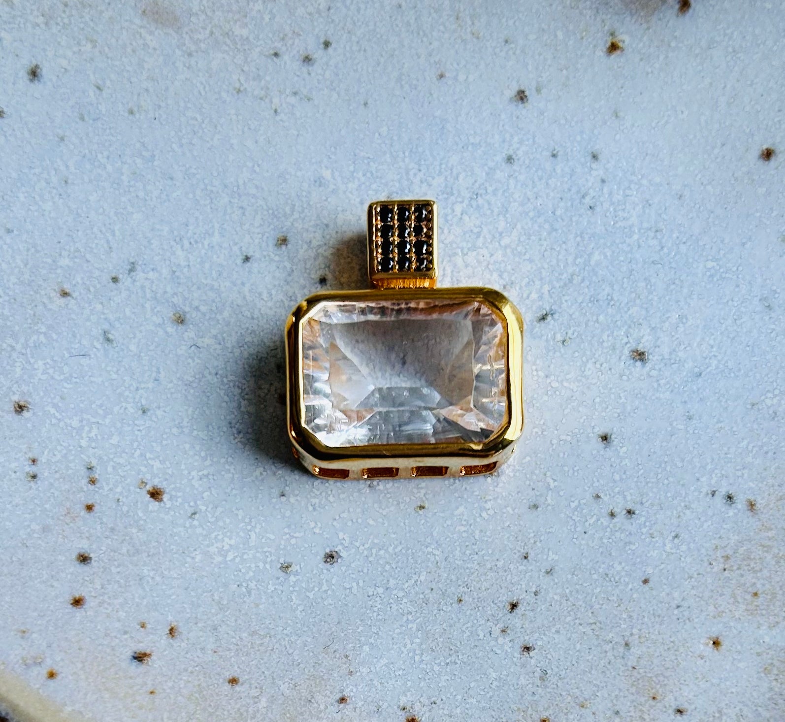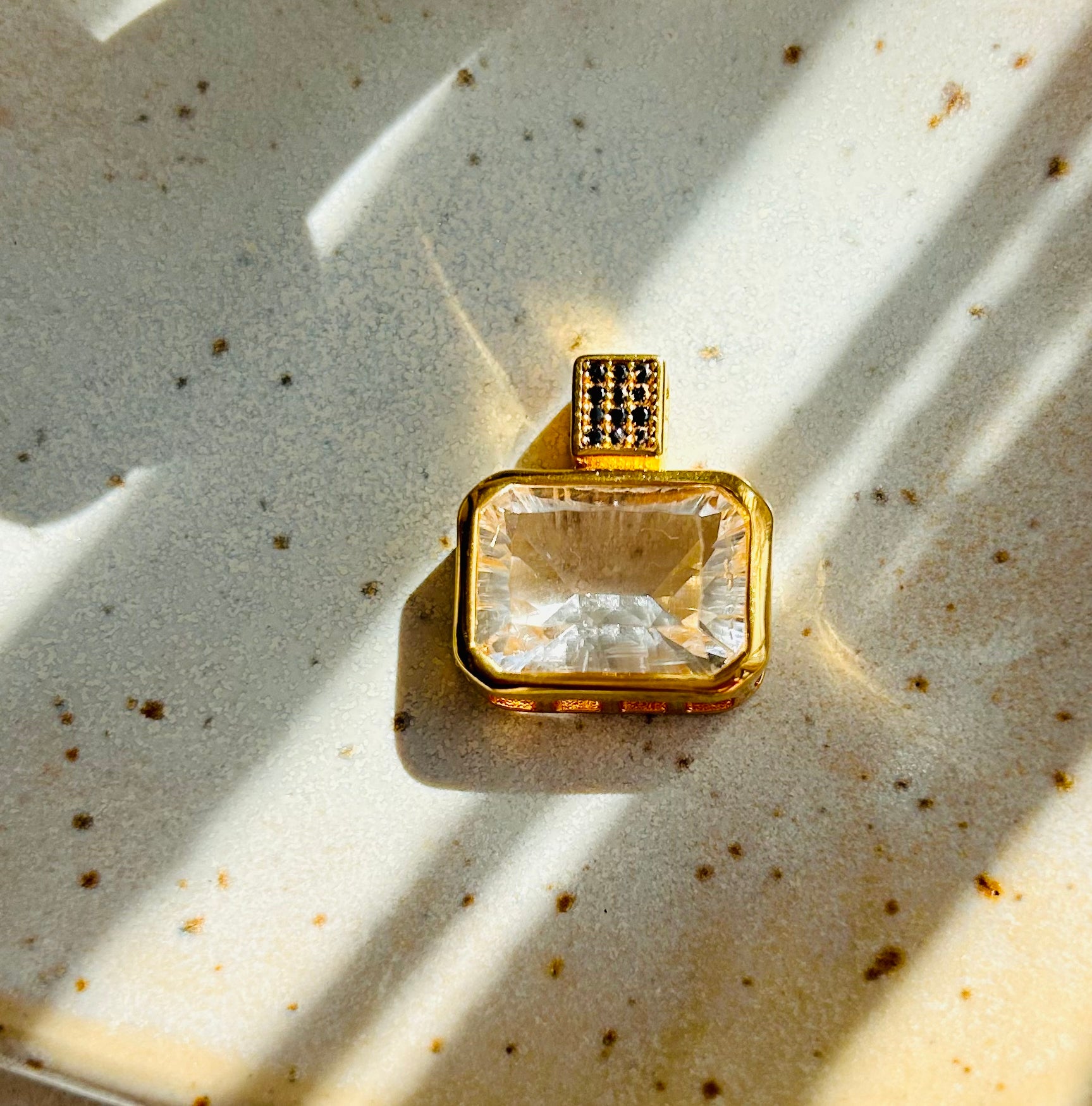Die Fassungen der Edelsteine sowie die Öse sind aus vergoldetem Silber 925