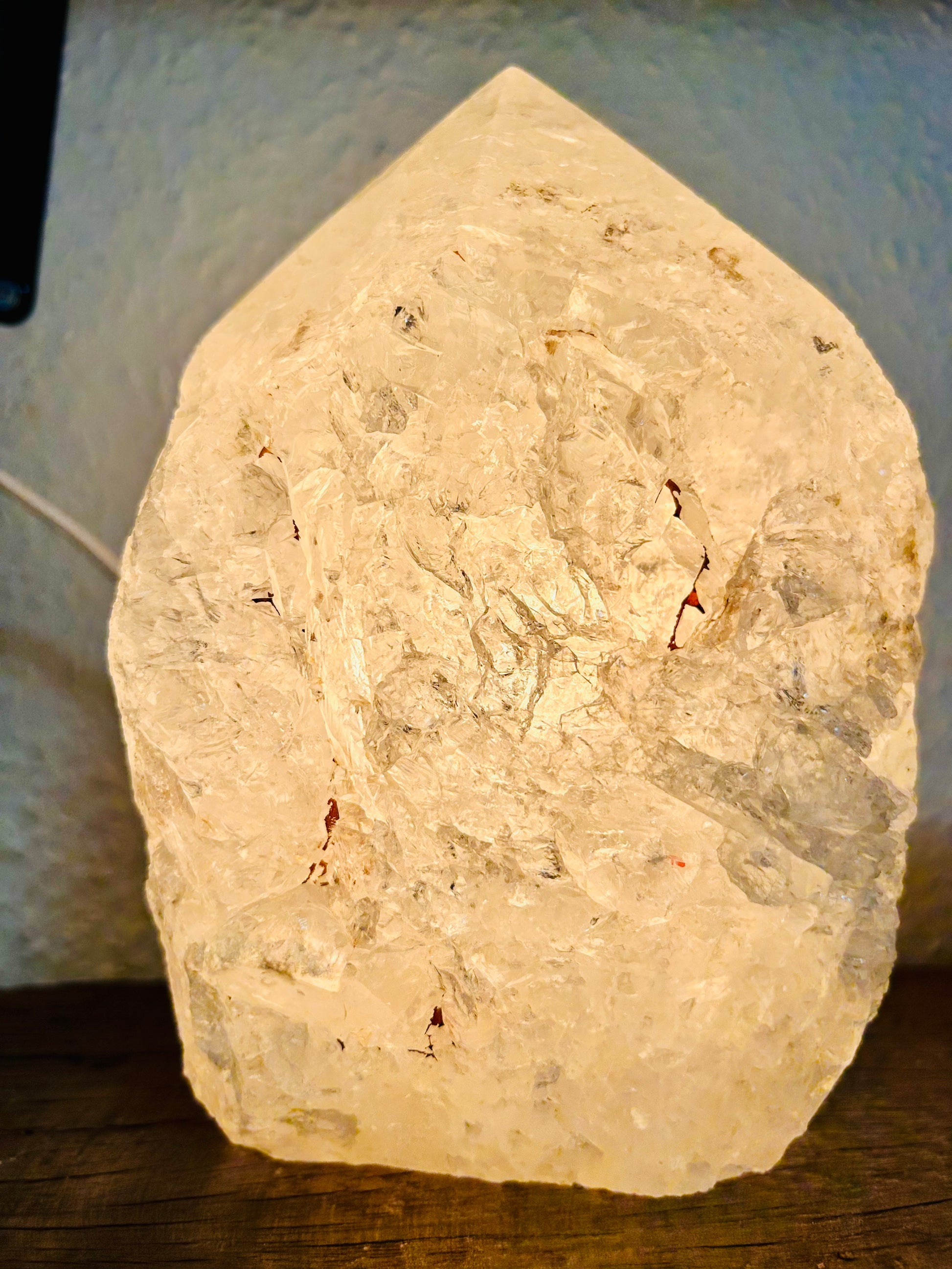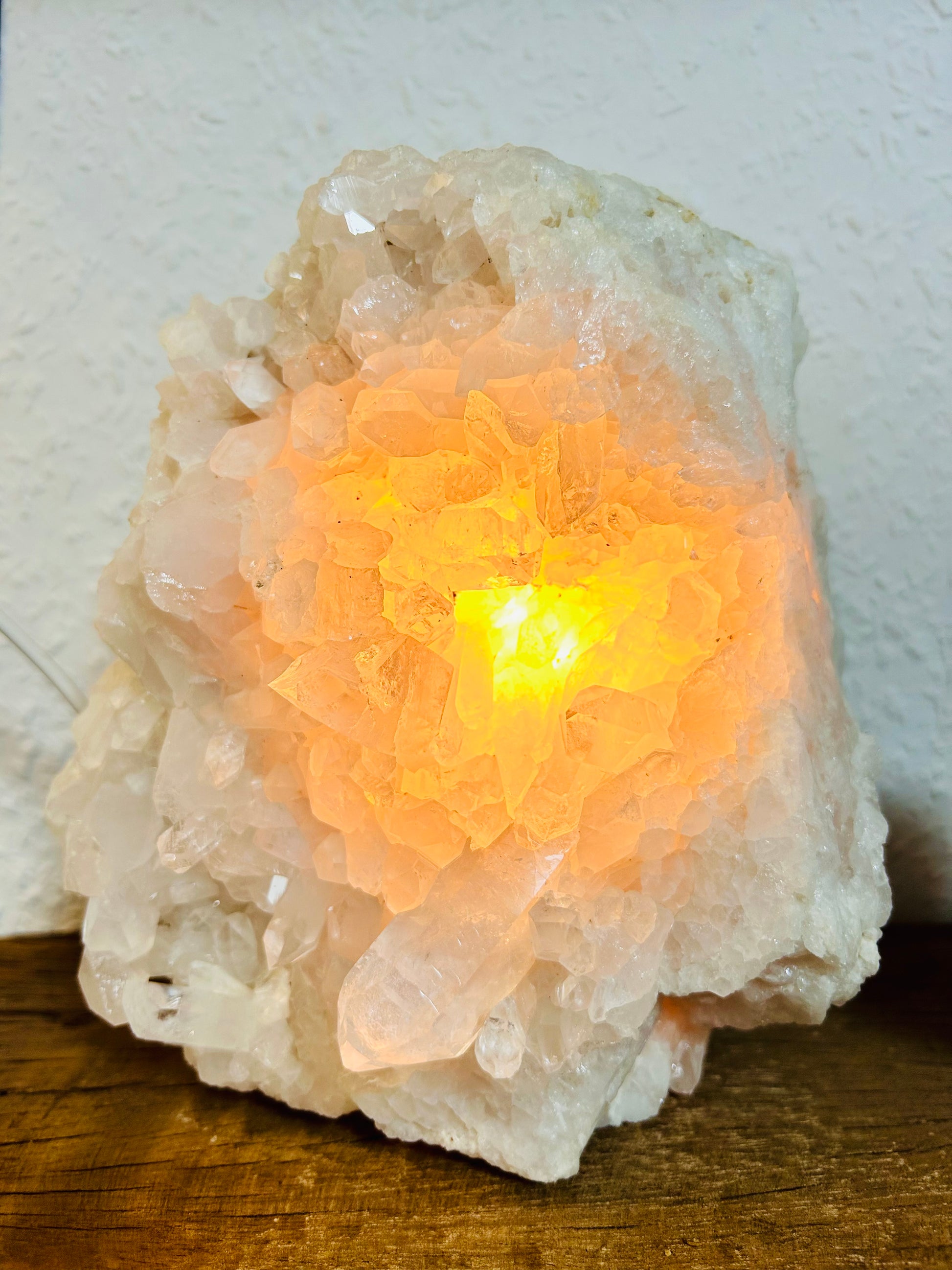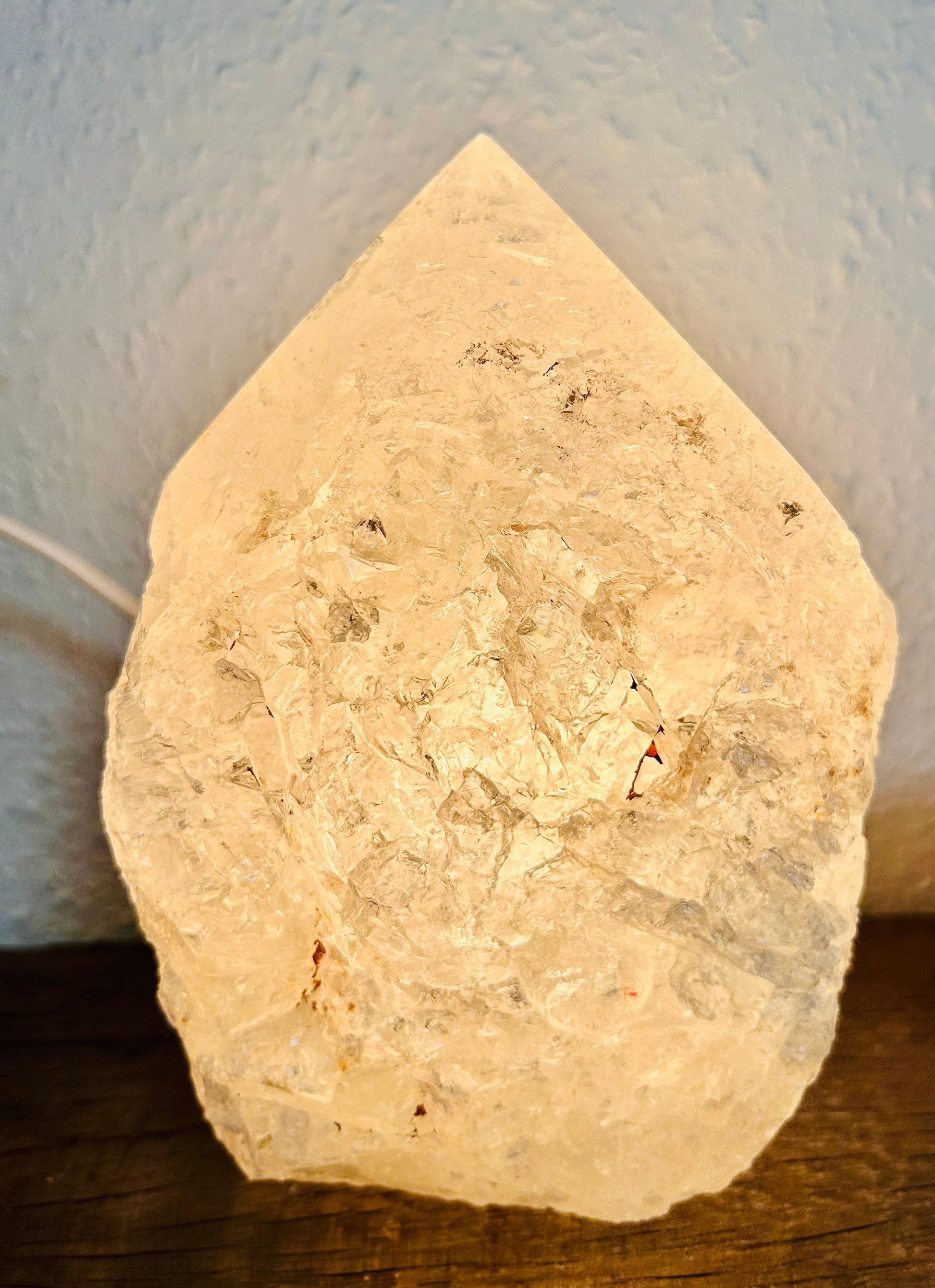 Diese beeindruckende Bergkristalllampe kombiniert zeitloses Design mit den kraftvollen Eigenschaften des Bergkristalls. Mit ihren wunderschönen, klaren Bergkristallspitzen und einer stabilen Basis  bringt sie nicht nur sanftes Licht, sondern auch eine harmonisierende Energie in deinen Raum.