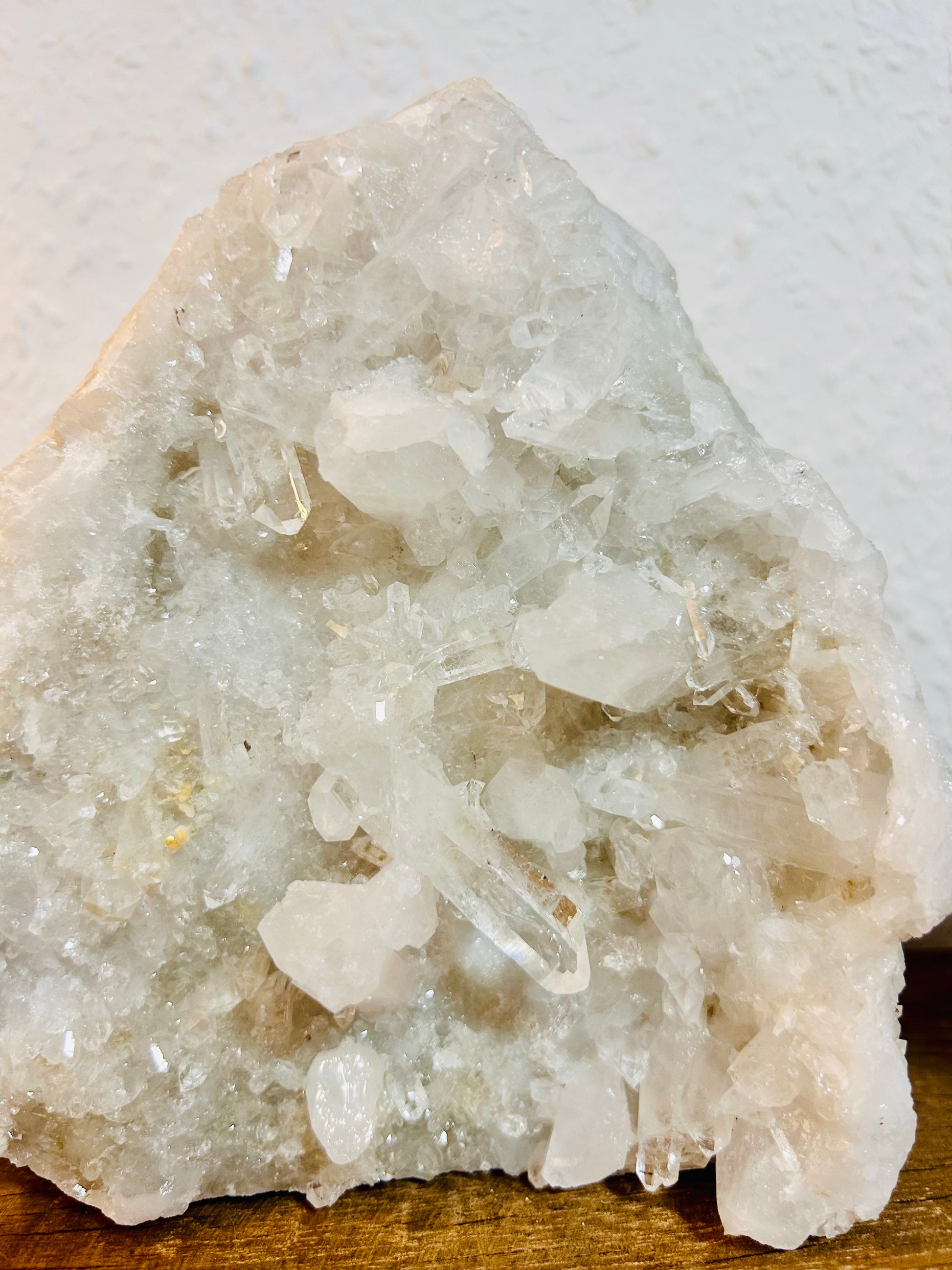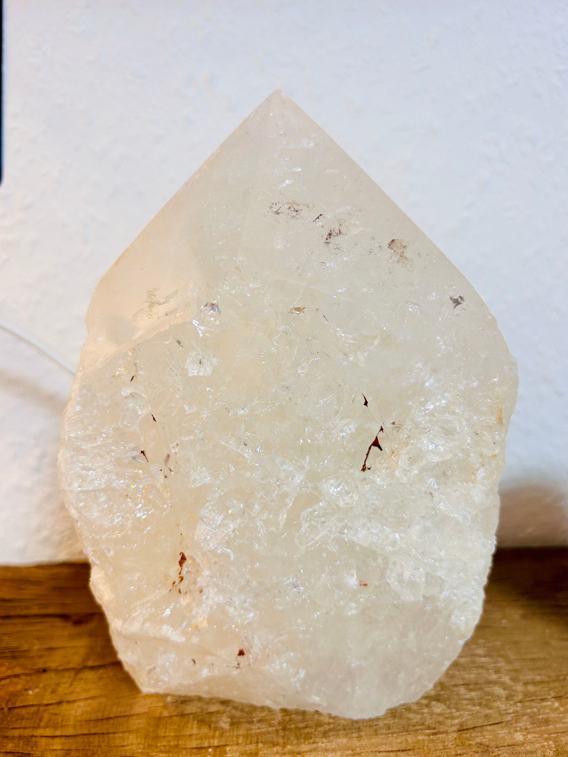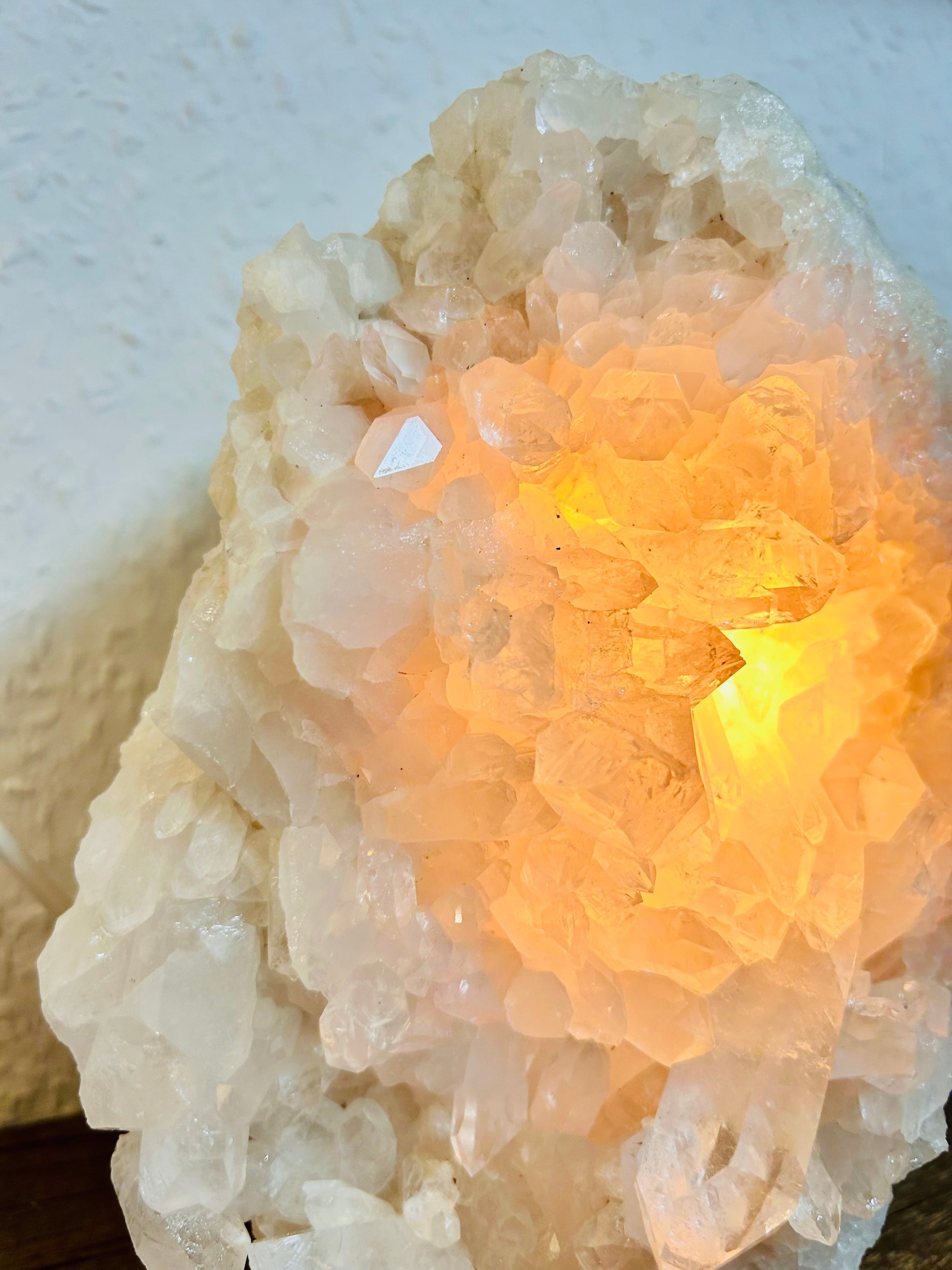 Diese beeindruckende Bergkristalllampe kombiniert zeitloses Design mit den kraftvollen Eigenschaften des Bergkristalls. Mit ihren wunderschönen, klaren Bergkristallspitzen und einer stabilen Basis  bringt sie nicht nur sanftes Licht, sondern auch eine harmonisierende Energie in deinen Raum.