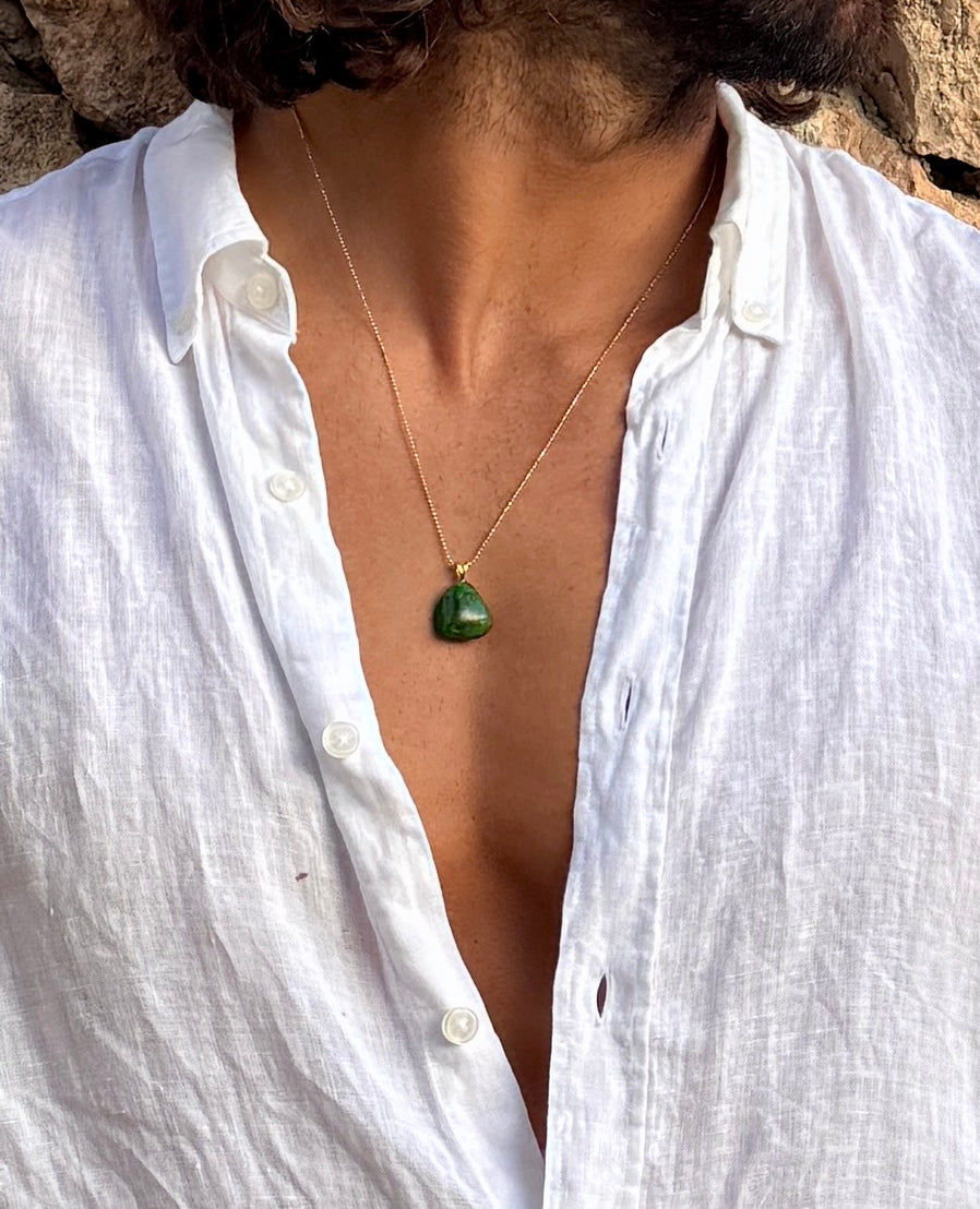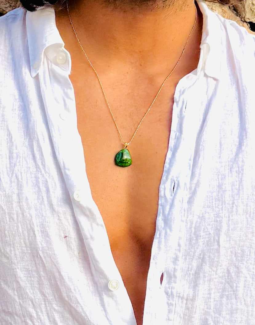 Chromdiopsid, oft als Visualisierungsstein genutzt, soll laut einer Legende vom Baum des Lebens (Yggdrasil) stammen. Er hilft dir, eine tiefe Verbindung zu Mutter Erde herzustellen und deine Energien zu harmonisieren. Besonders in Zeiten großer Veränderungen wirkt er stabilisierend und erdet dich.