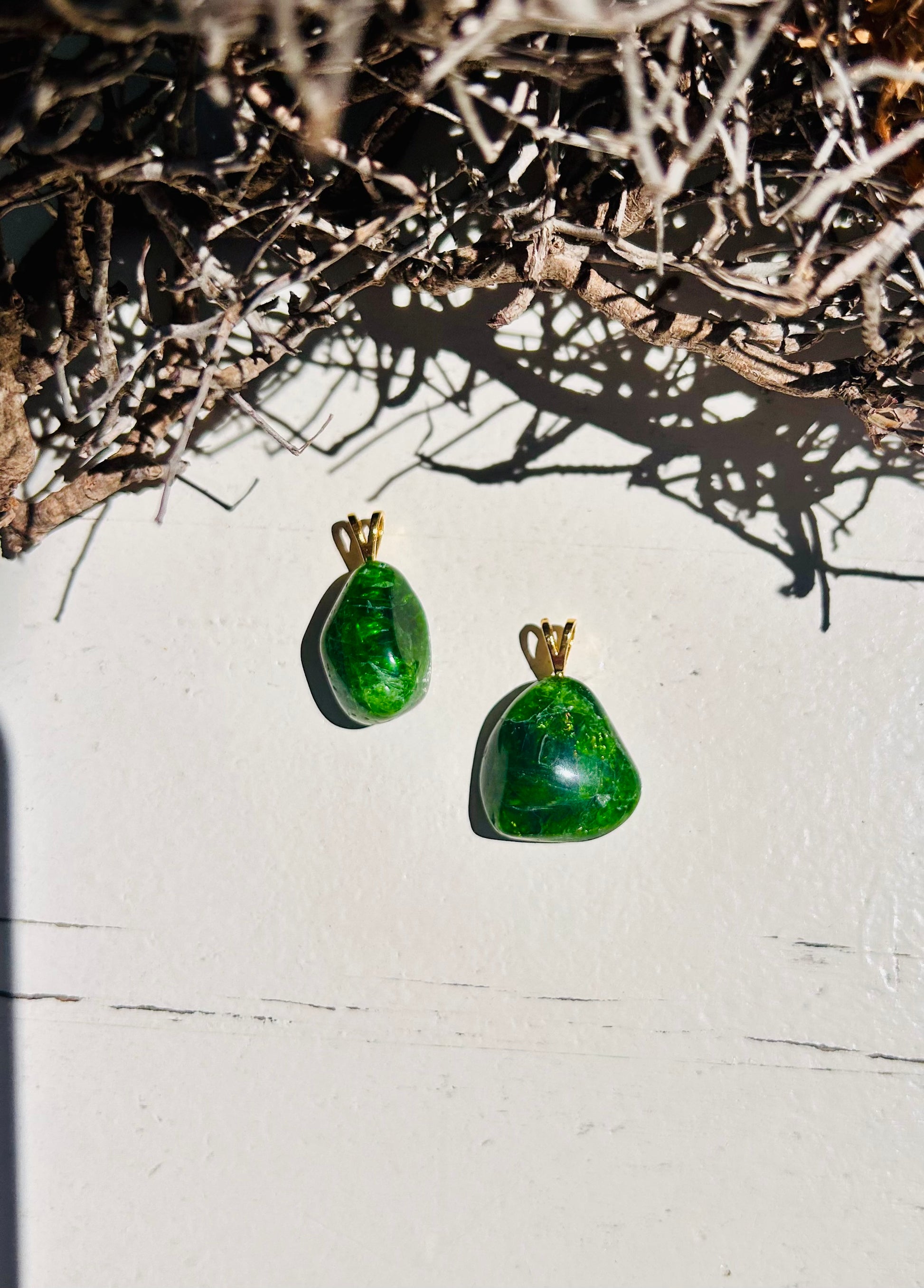 Chromdiopsid bringt starke Heilenergien, wirkt wie ein Detox für Körper und Geist, harmonisiert deine Energien und hilft dir, deine weibliche Seite zu akzeptieren. Er gleicht Hormone aus, stärkt und regeneriert auf allen Ebenen.