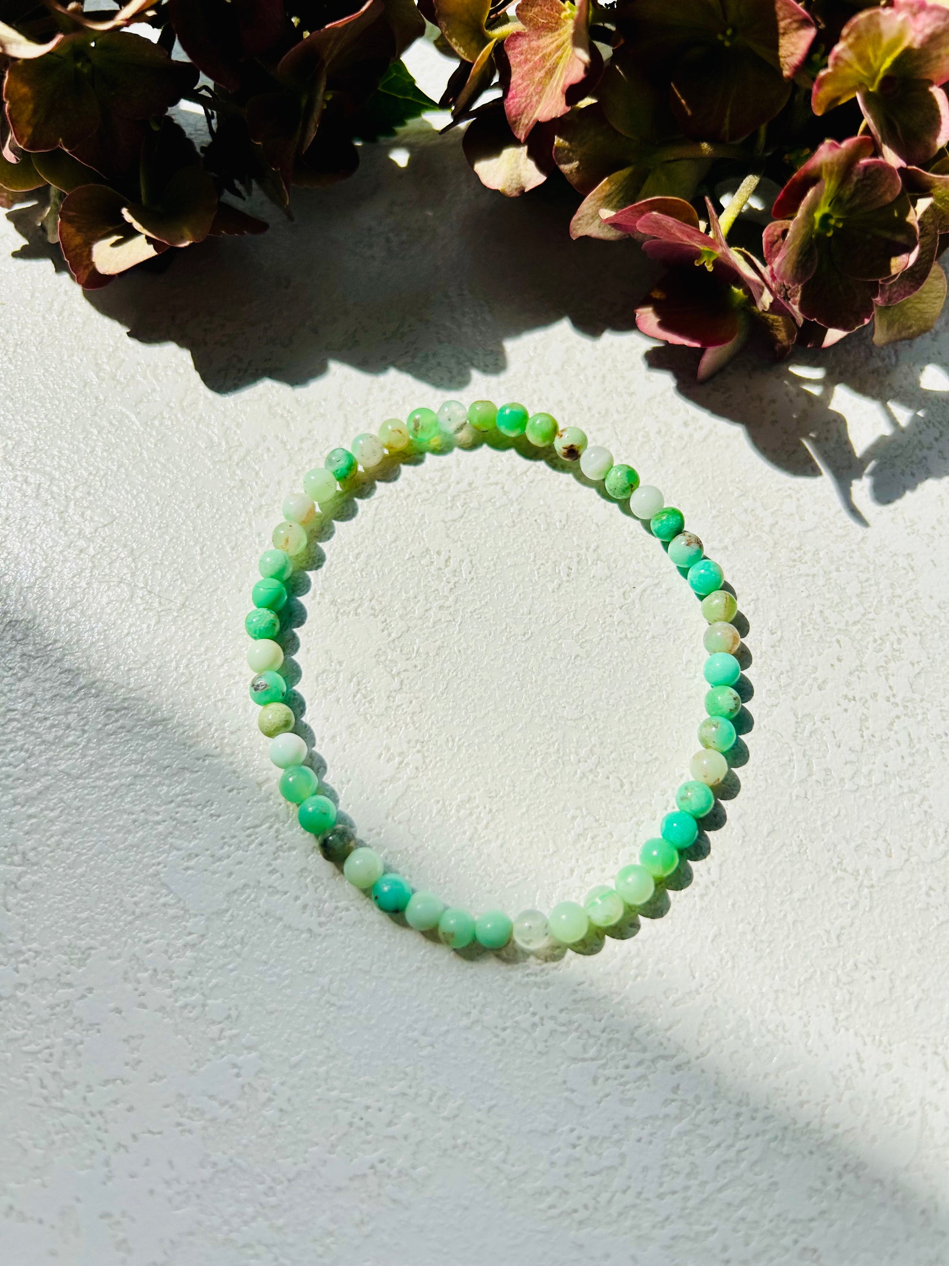 Dieses zarte Chrysopras-Armband mit glatten 4 mm Kugeln strahlt Ruhe und Natürlichkeit aus. Es unterstützt dich dabei, dich selbst liebevoller wahrzunehmen und gelassener mit Herausforderungen umzugehen.
