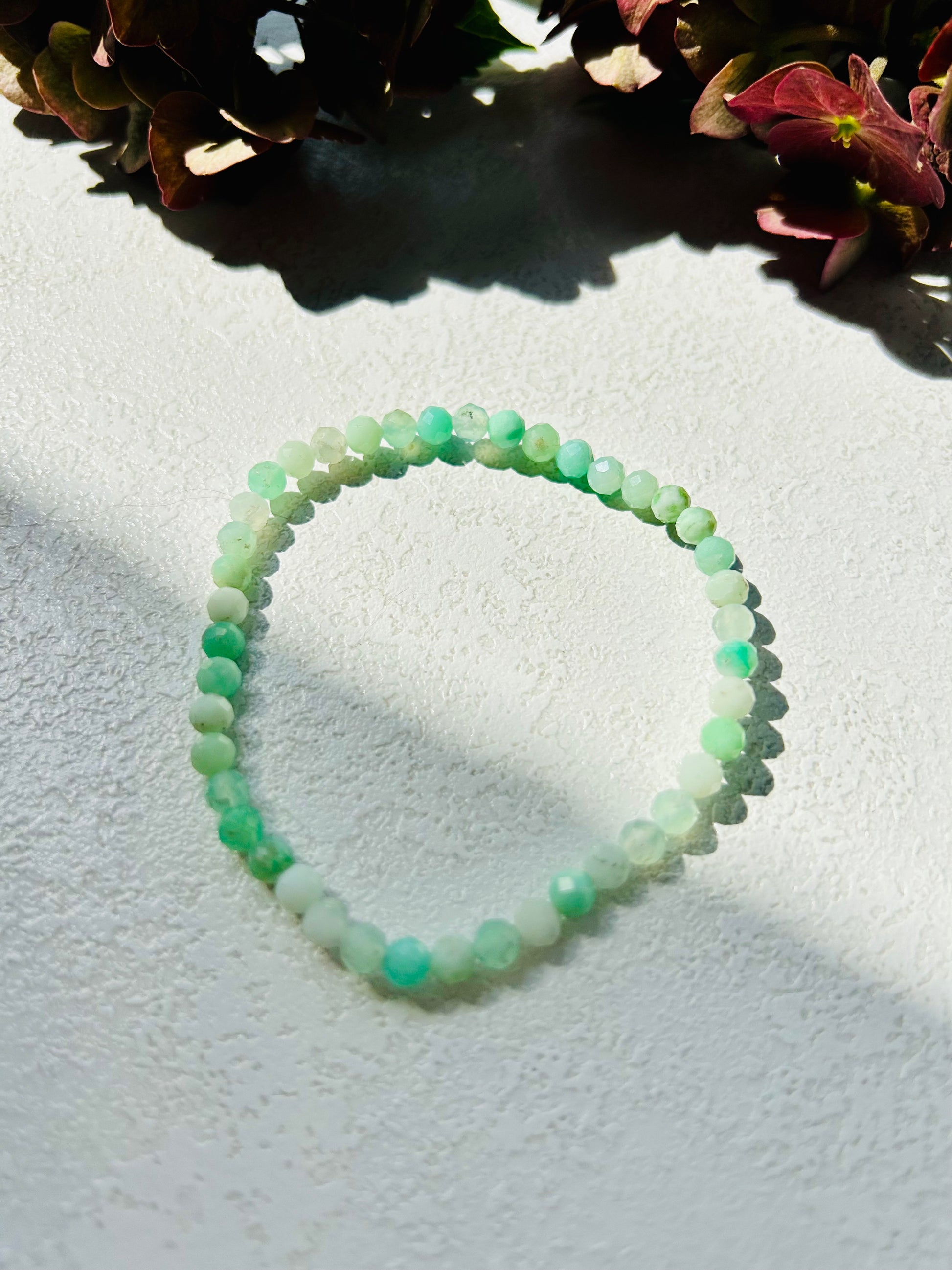 Dieses Armband aus facettiertem Chrysopras bringt Leichtigkeit, Frische und innere Balance. Sein lebendiges Grün erinnert an den Frühling – an Aufbruch, Erneuerung und Vertrauen in deinen Weg.