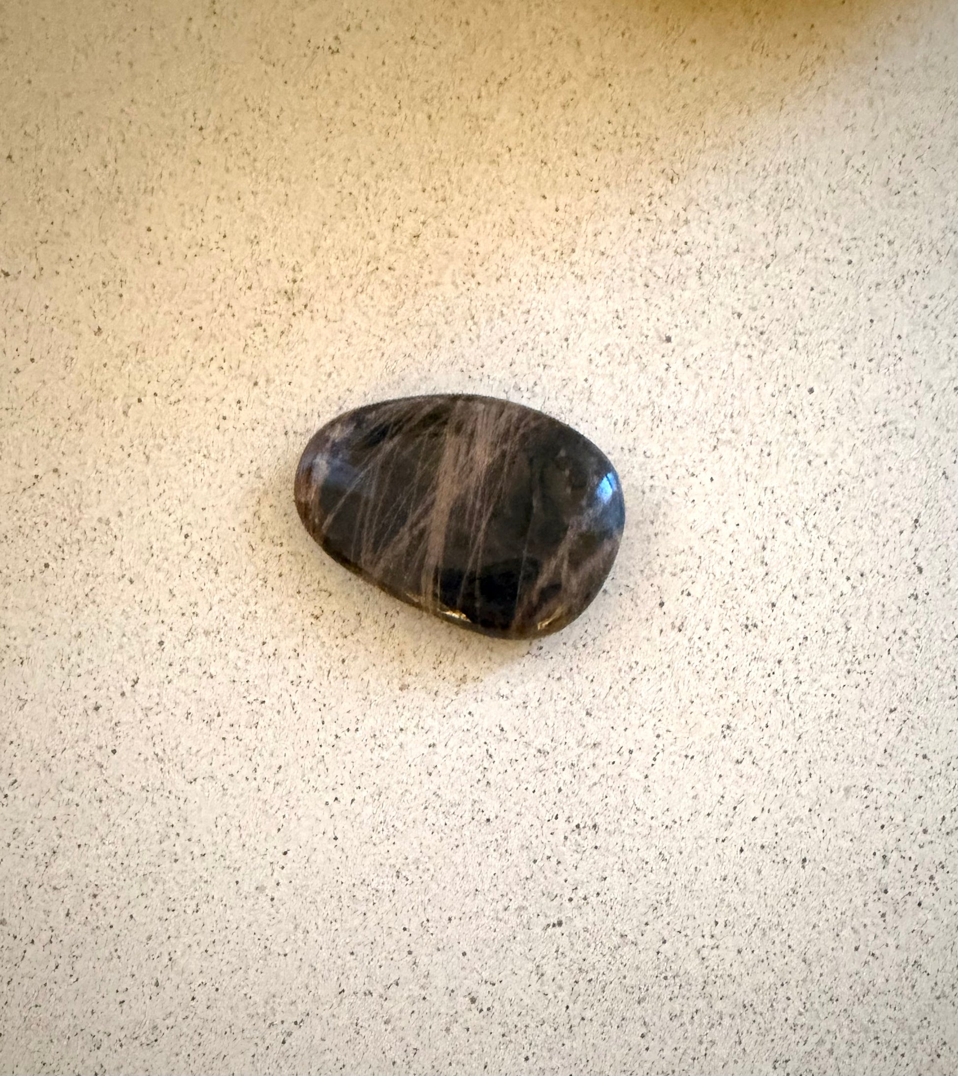 Der dunkle Mondstein trägt die Magie der Nacht und die Tiefe der Intuition in sich. Er wird in der spirituellen Steinwelt oft als Begleiter für Zyklen, Emotionen und die Rückkehr zur eigenen inneren Wahrheit gesehen. Seine schimmernden, dunklen Nuancen wirken wie ein Spiegel, der dich sanft nach innen führt.