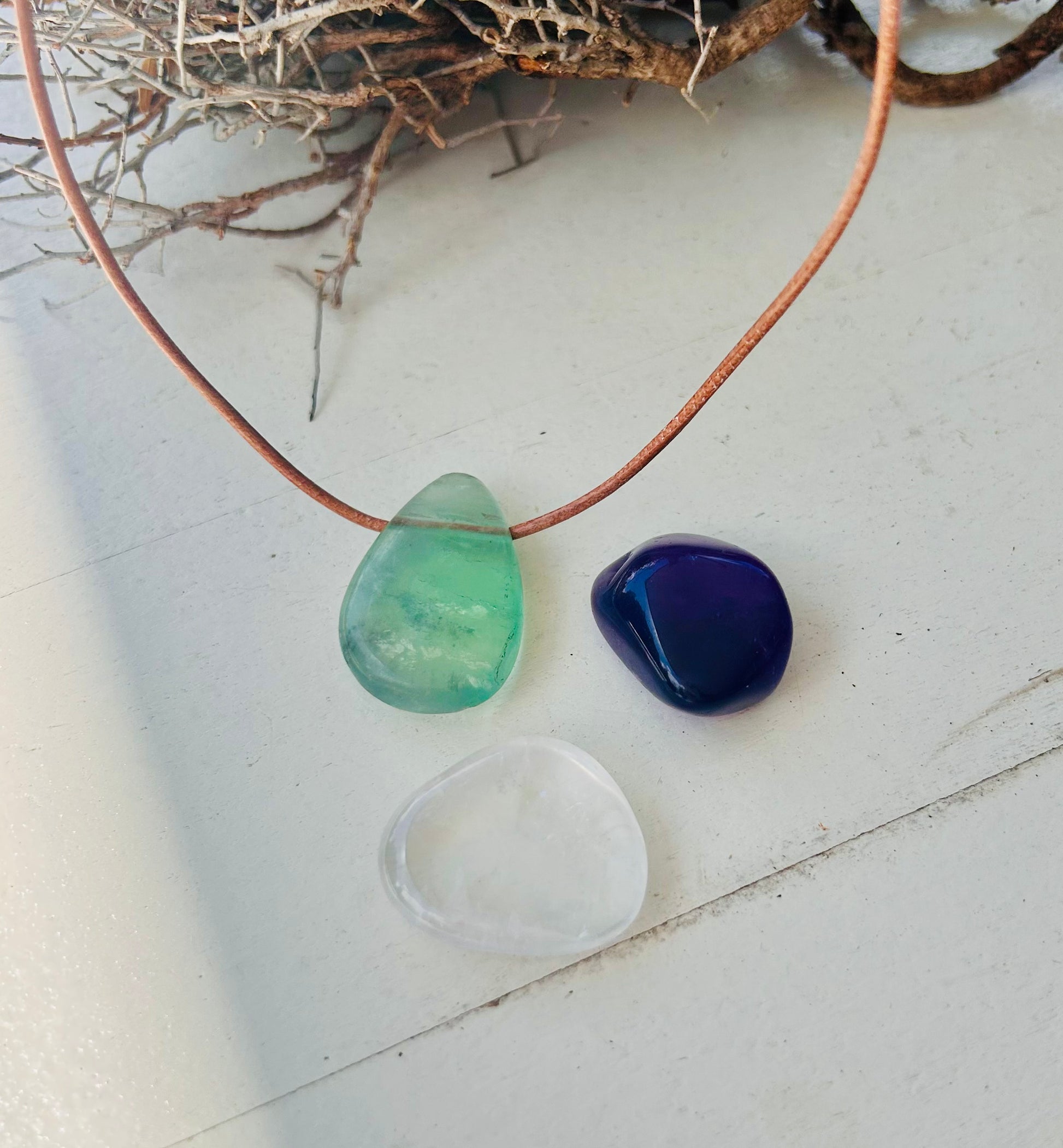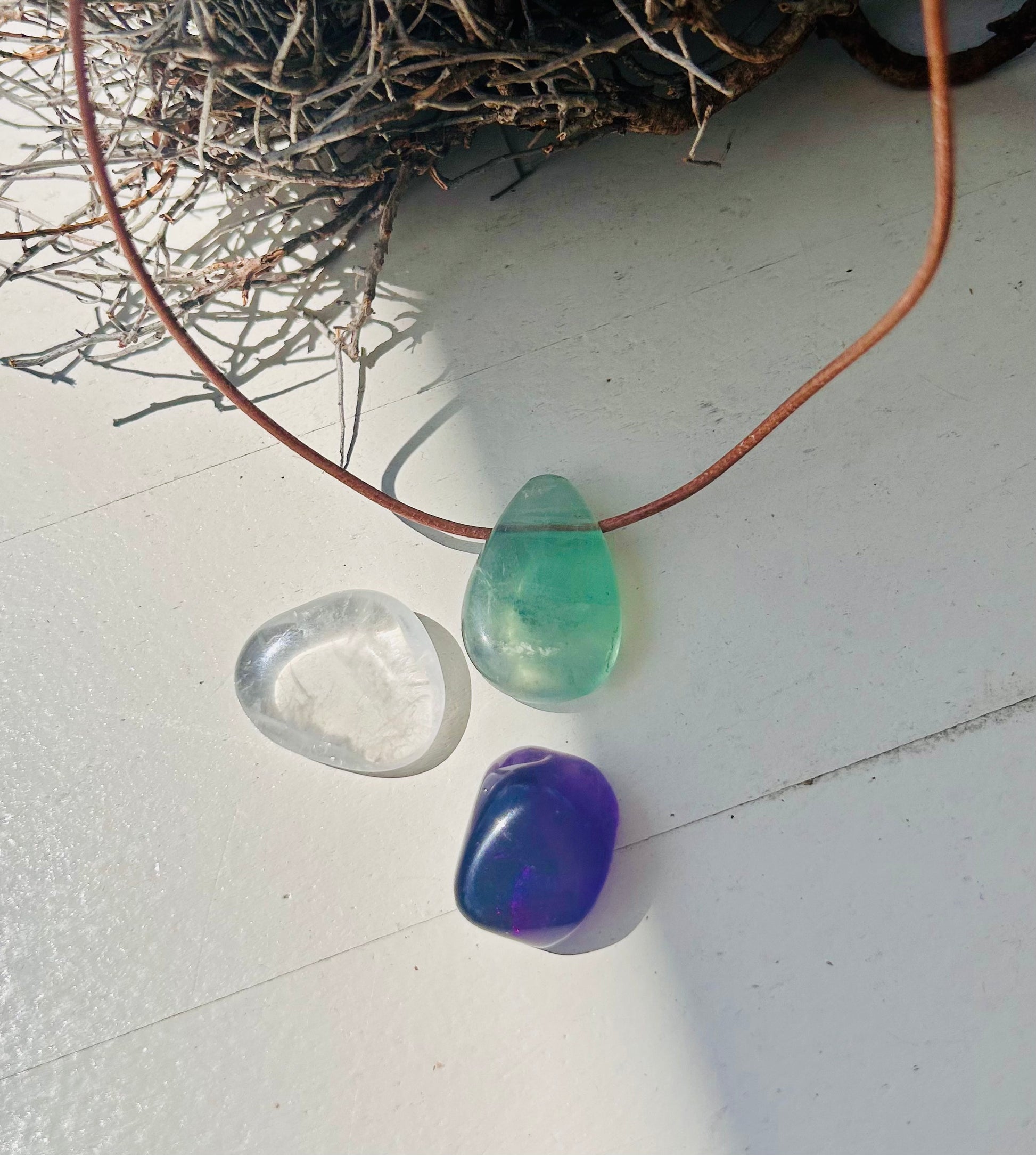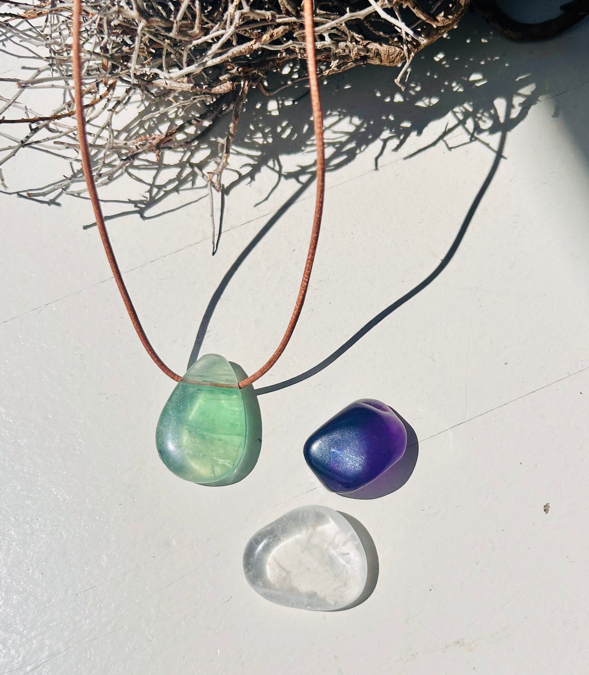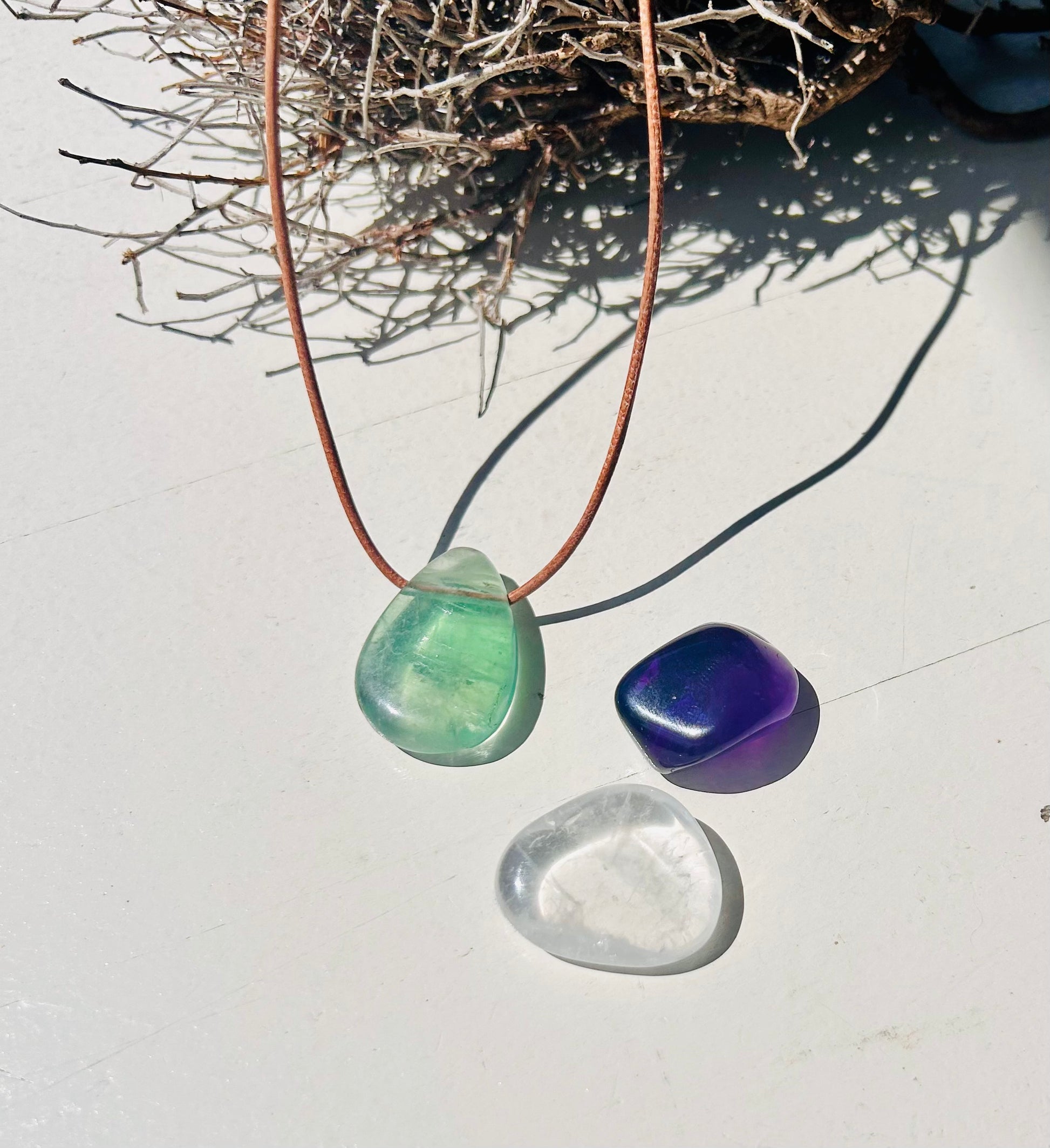 1. Fluorit Trommelstein Anhänger