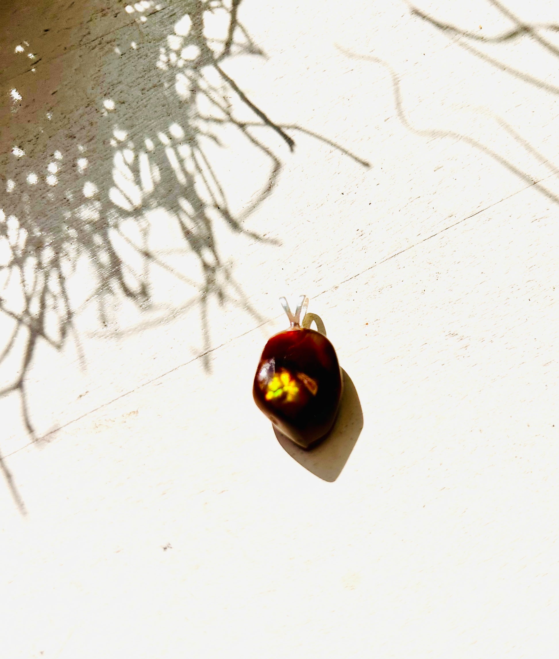 Ein kraftvoller Funke für deine Lebensenergie: Dieser Feuerachat-Anhänger verbindet erdende Tiefe mit innerem Feuer. Seine schimmernde Struktur erinnert an glühende Kohlen – ein Zeichen für die Stärke, die unter der Oberfläche lodert.