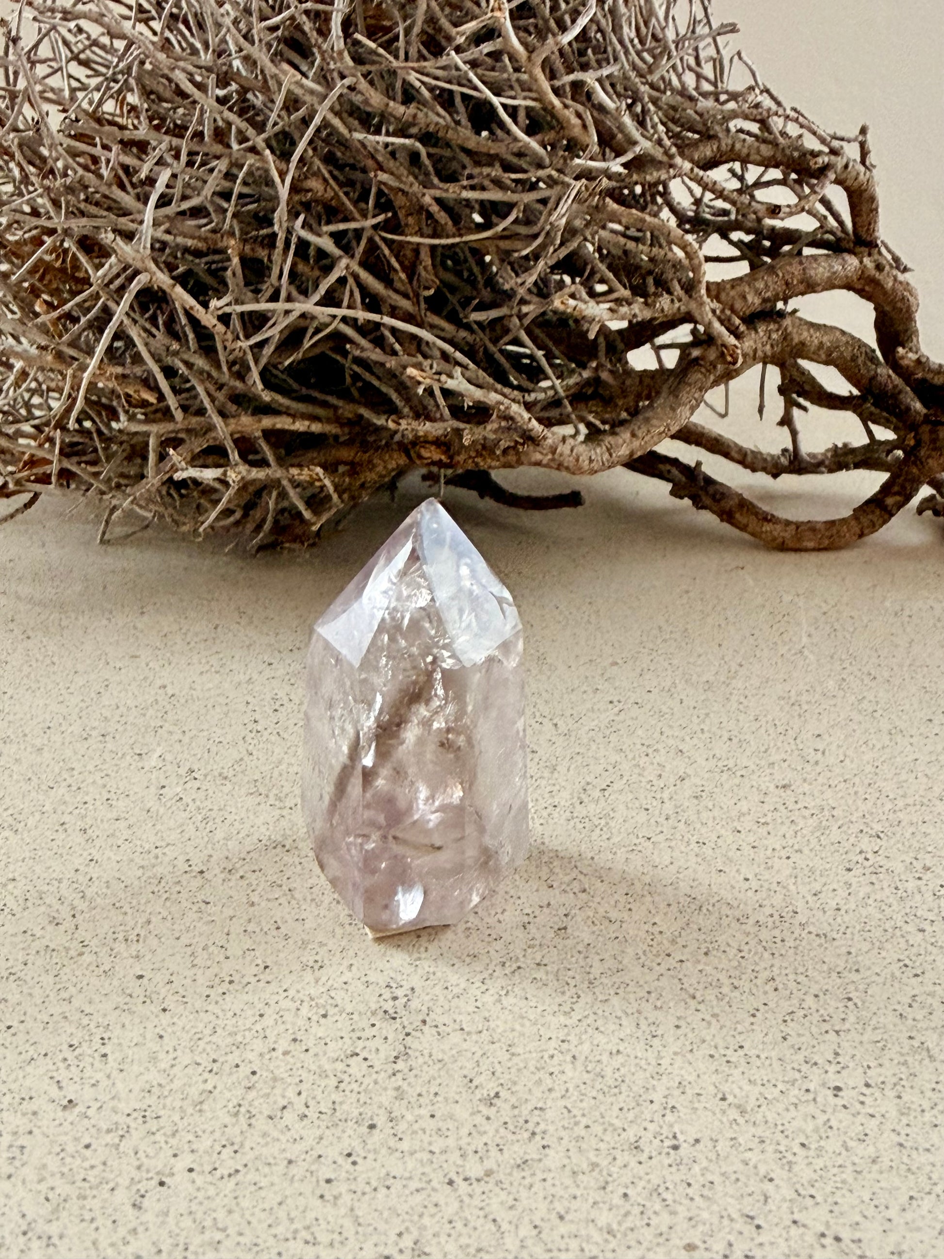 Diese außergewöhnlichen Kristalle vereinen die Energien von Amethyst und Rauchquarz – durchzogen von Phantomstrukturen und schimmernden Regenbögen, die ihnen Tiefe und Magie verleihen.