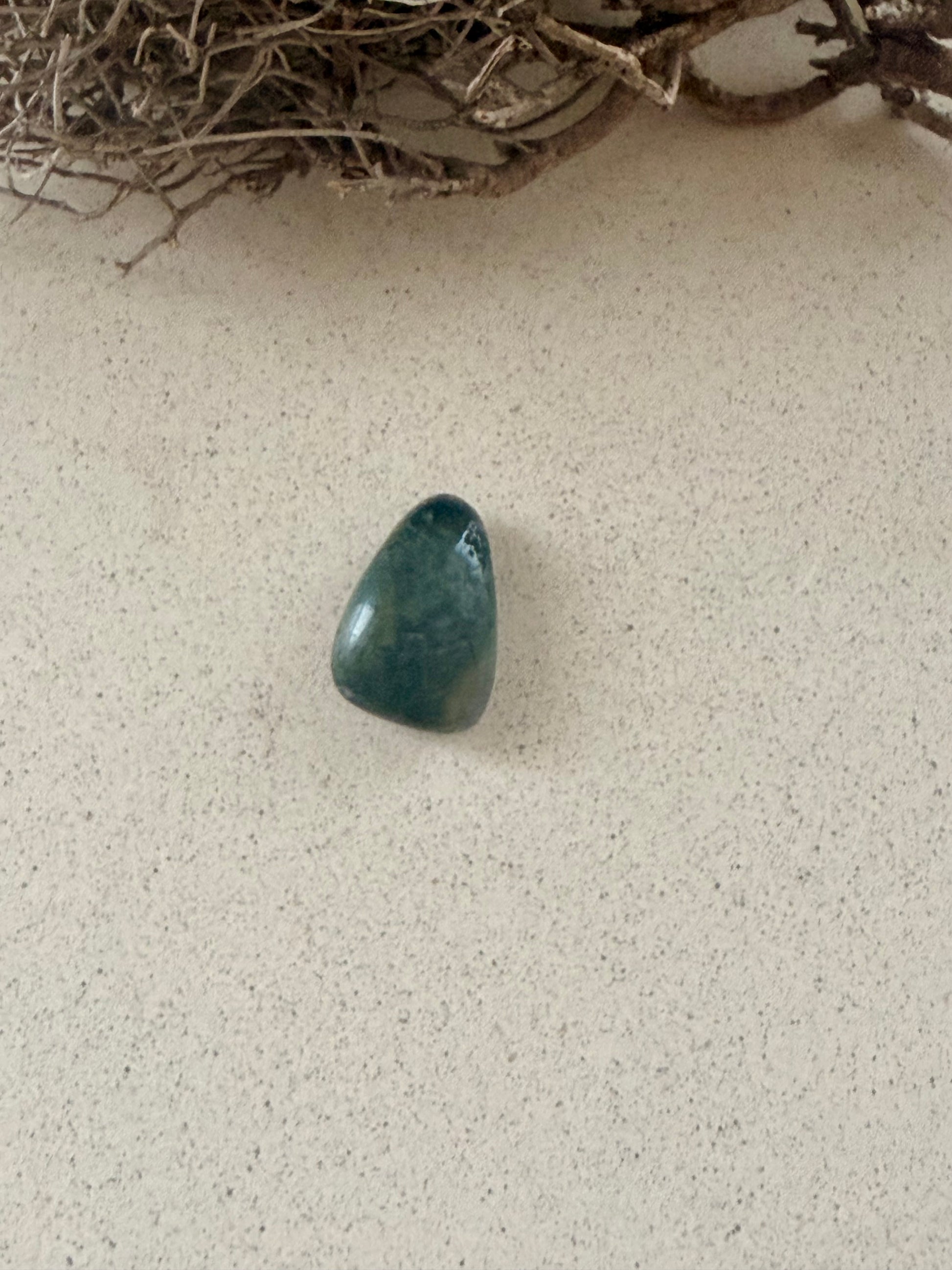Moosachat wird traditionell mit Wachstum, Naturverbundenheit und innerer Stabilität verbunden. Seine grün-moosartigen Strukturen erinnern an Wälder, Erde und die Kraft des Neubeginns.