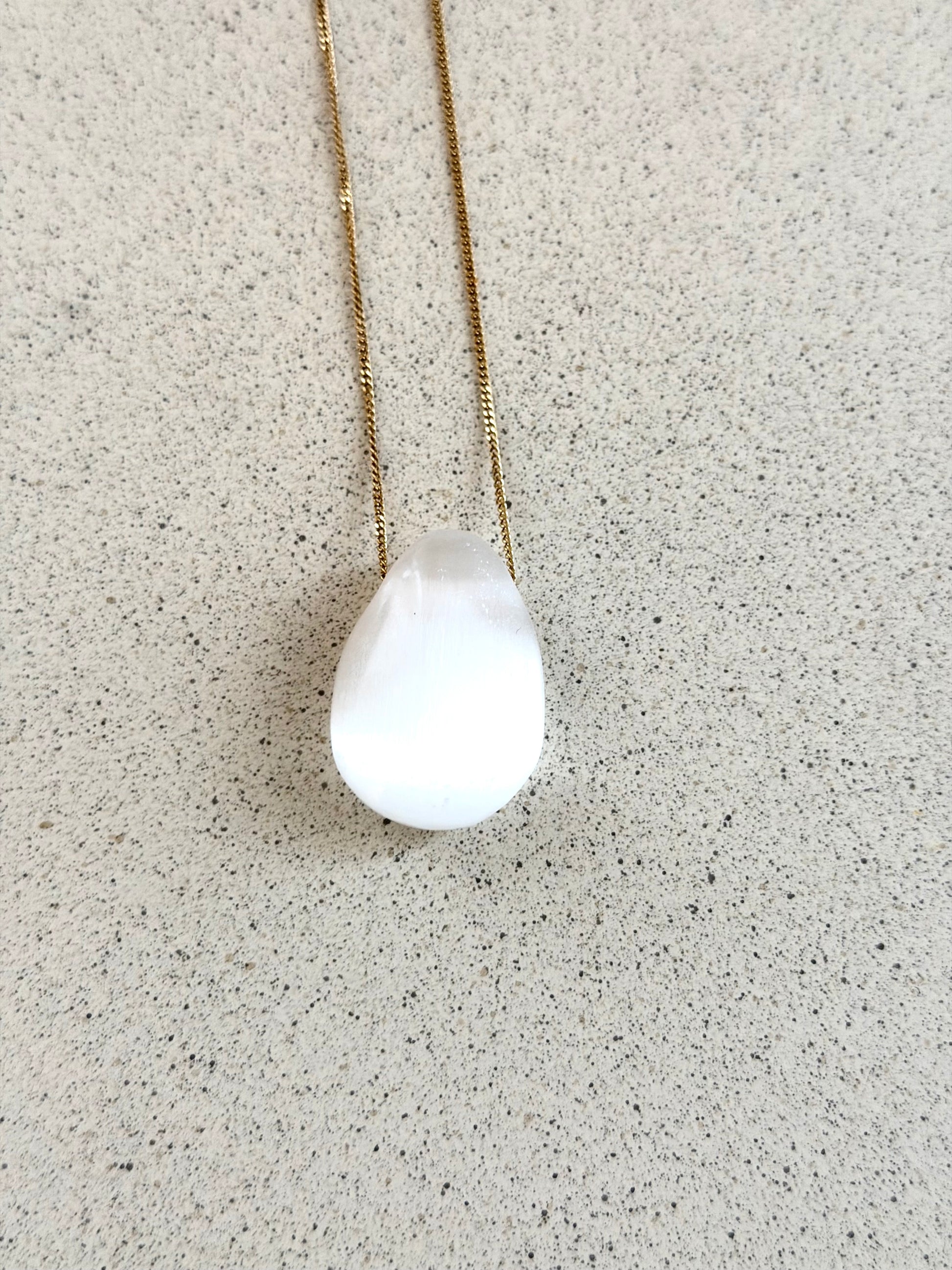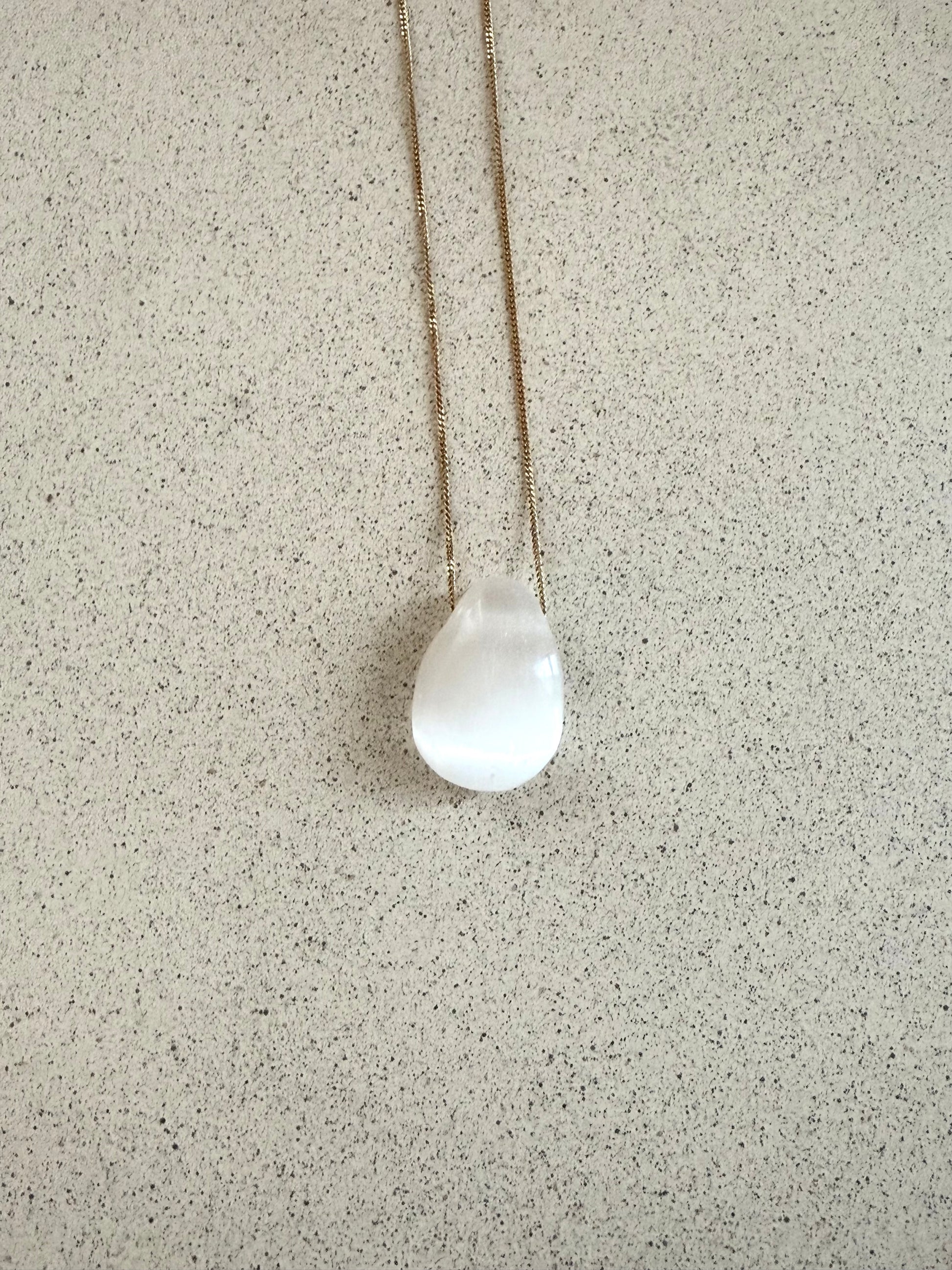 Dieser gebohrte Selenit ist ein kleiner Lichtanker für deinen Alltag. Selenit gehört zu den klarsten, reinsten Steinen – er erinnert dich daran, weich zu werden, durchzuatmen und in deine eigene Mitte zurückzukehren.