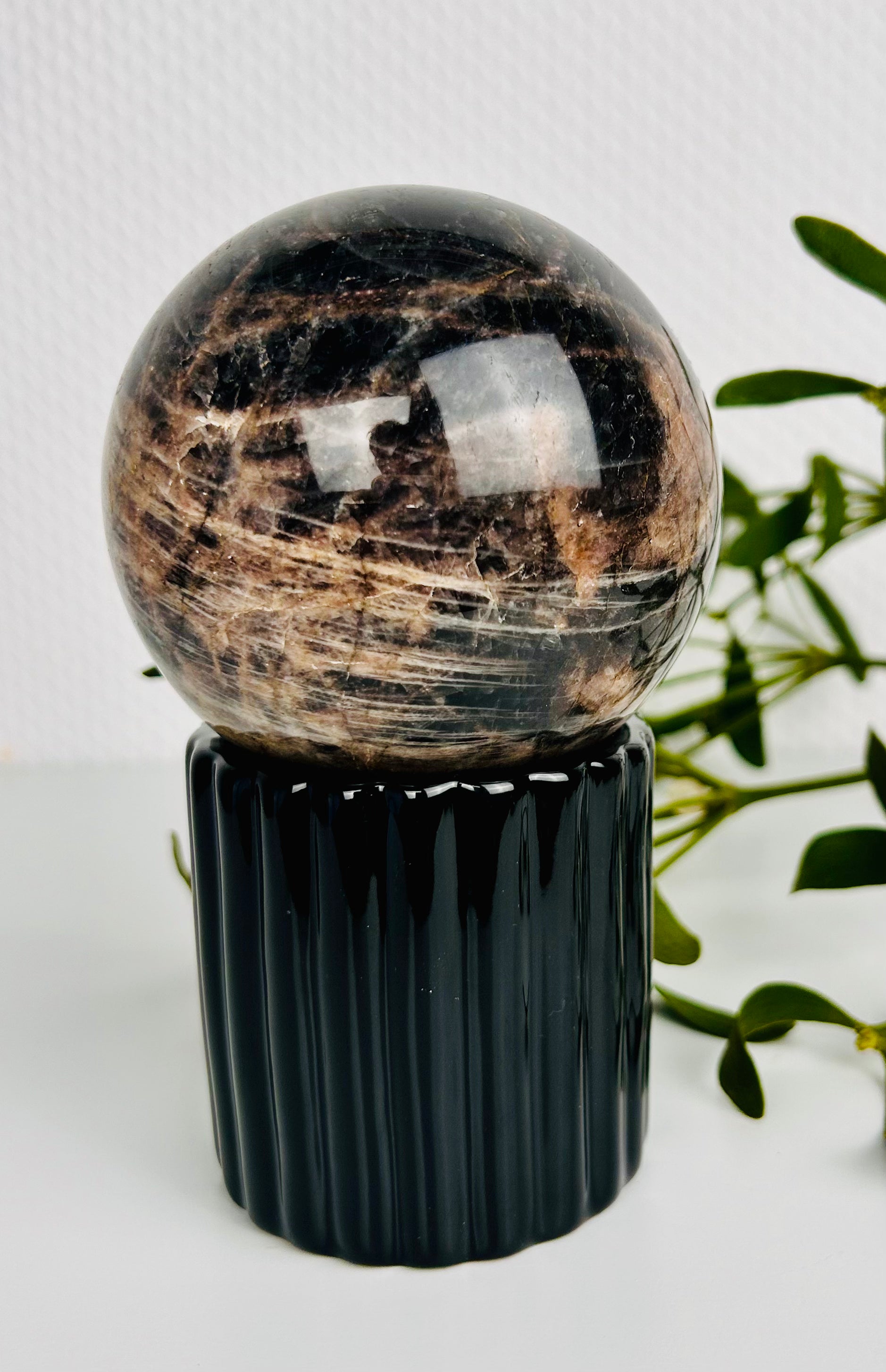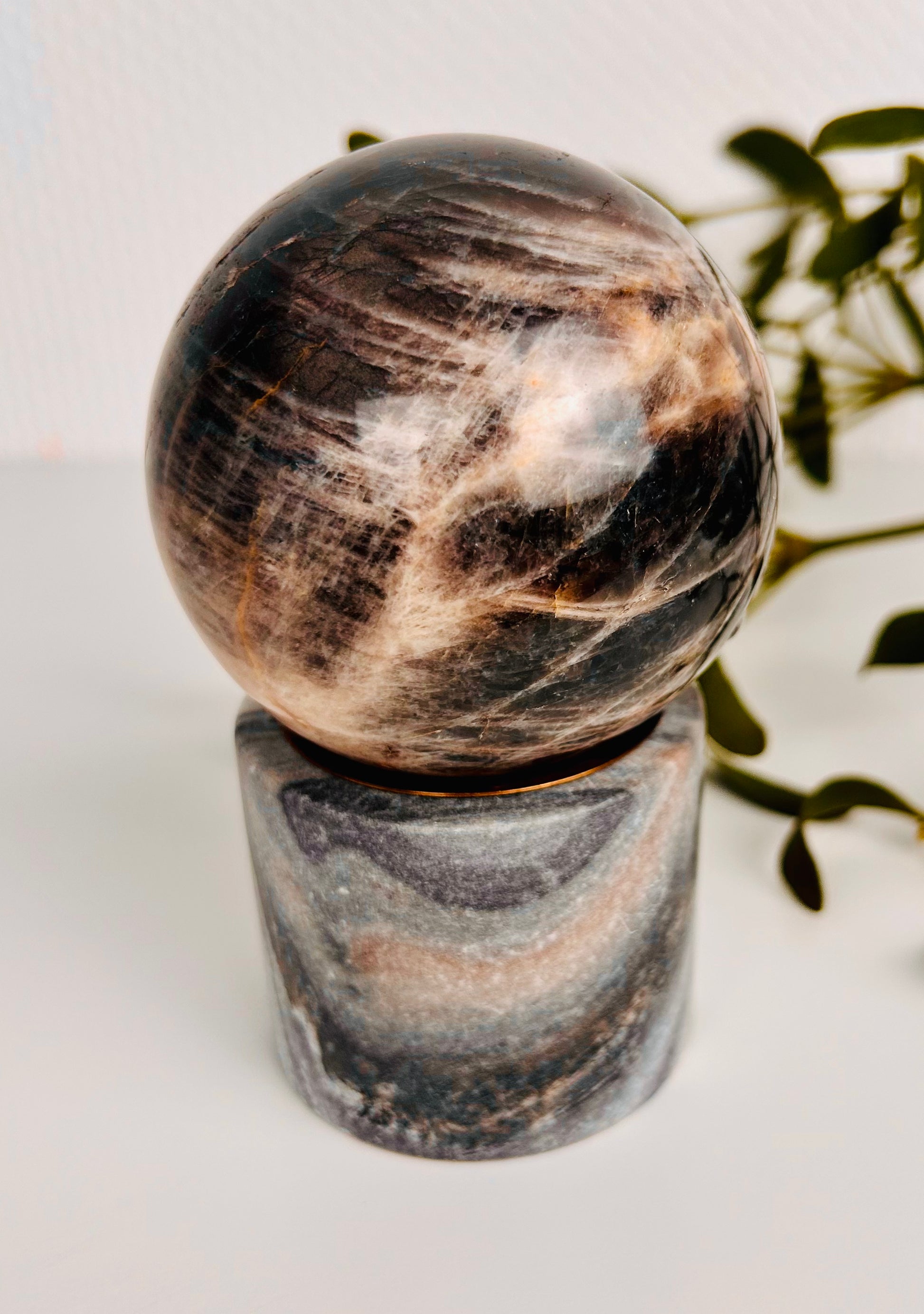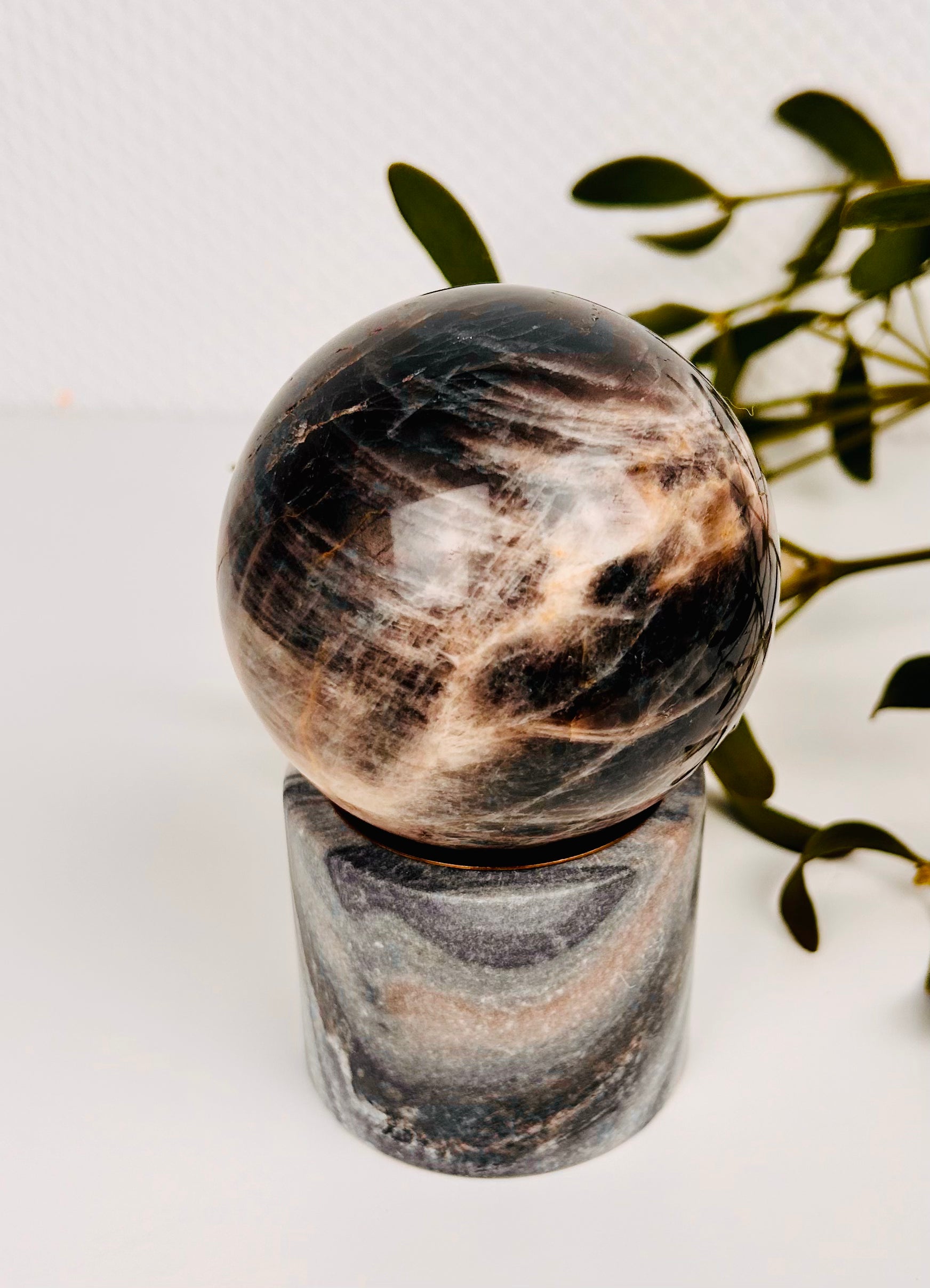 Dein Selbst und dein Zuhause wird geerdeter und stabiler, wenn du schwarzen Mondstein platzierst. Er verbessert deine Konzentration (auch an chaotischen Arbeitsplätzen) und erhöht deine Ausdauer