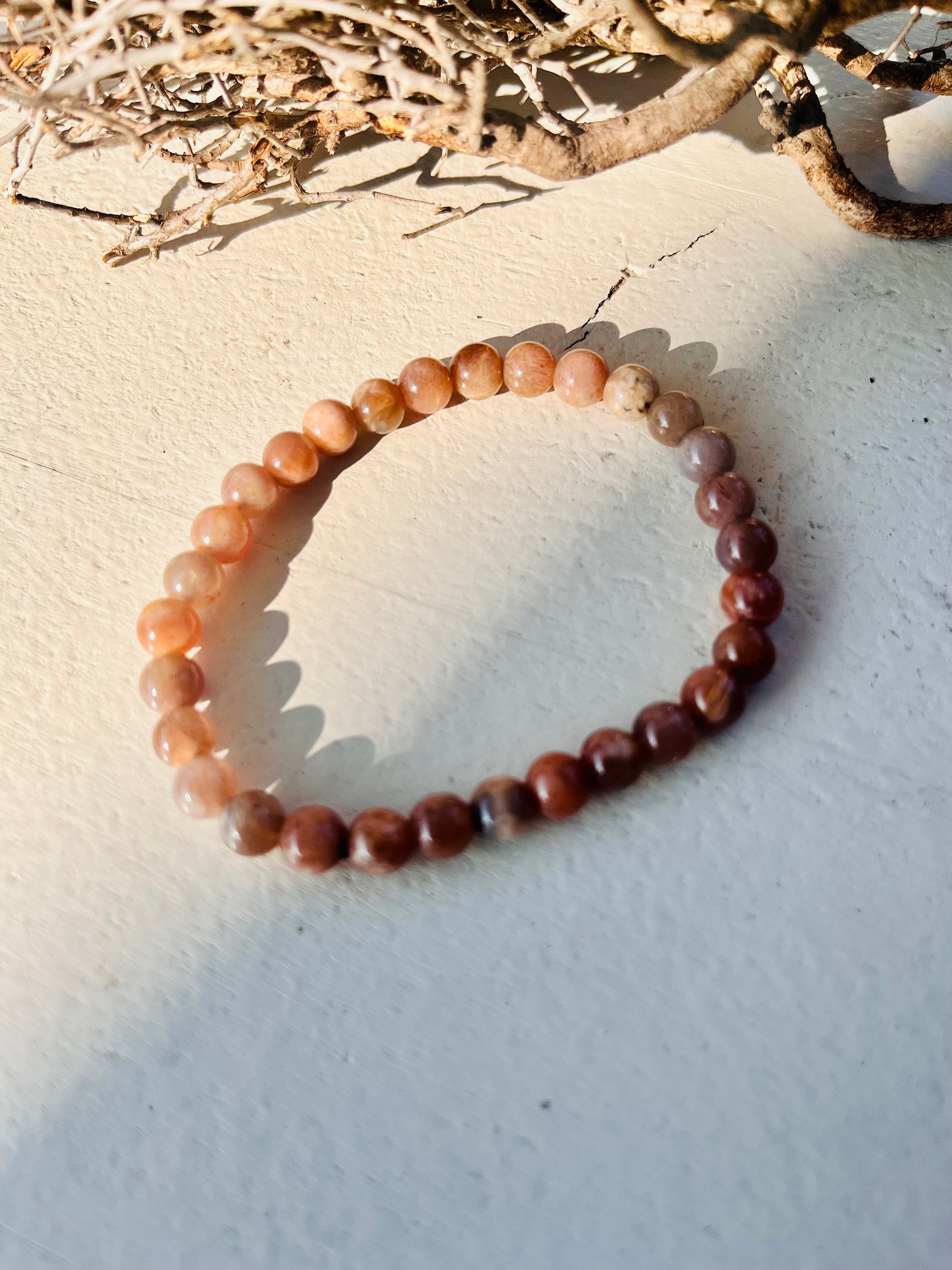 Dieses Armband vereint das Beste aus zwei Welten: die sanfte, intuitive Energie des Mondsteins mit der warmen, vitalen Kraft des Sonnensteins. Die zarten Schimmer in Beige, Creme, Apricot und Gold machen jedes Stück zu einem kleinen Lichtblick fürs Handgelenk.