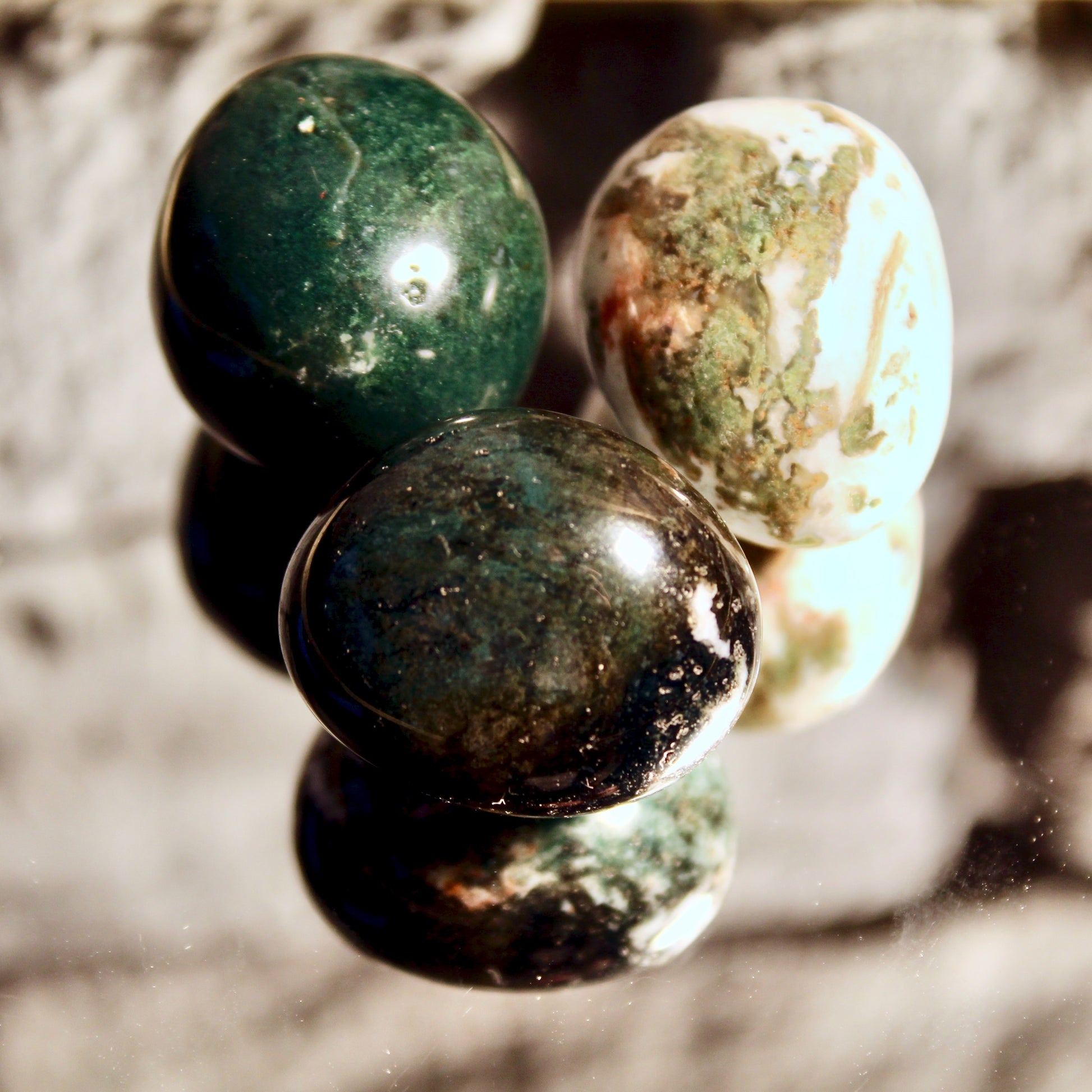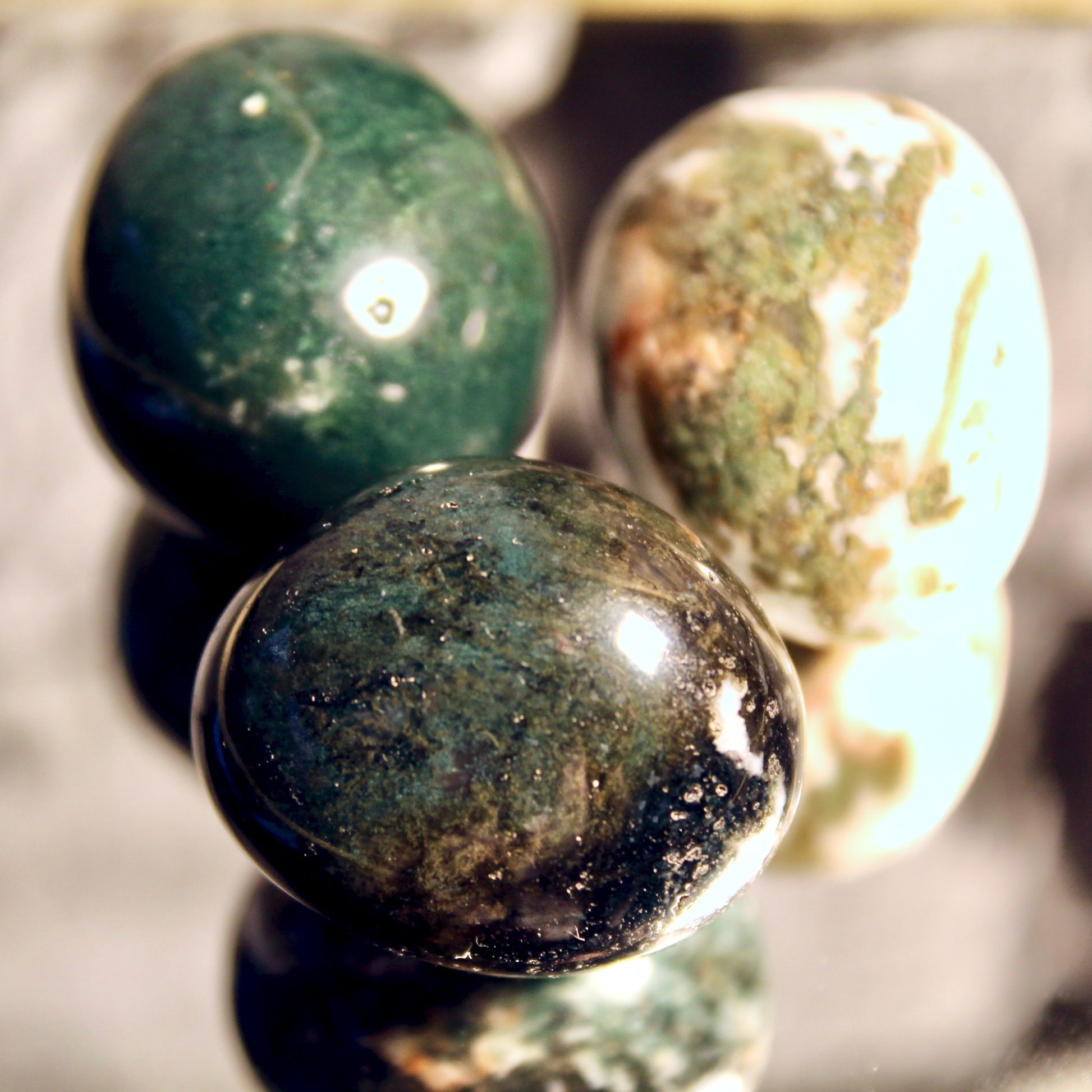 Der grüne Moosachat kommt in der Edelstein Heilkunde zur Anwendung, wenn die Befreiung von Belastungen und Einschränkungen gefragt ist. Alte Verbindungen, die nicht auf Basis von Selbstbestimmung und Liebe beruhen, können durch die Wirkung des Moosachats aufgelöst werden; die Befreiung von geistigen Ketten ist die Folge. Somit wird Kraft für die Wandlung geschenkt, um neue Wege zu gehen. Deshalb wird Moosachat auch Stein der Befreiung genannt. Zudem werden das rege Denken und die Kommunikation zu Mensch, Pflanzen- und Tierreich durch den grünen Moosachat angeregt. Bis in die moderne Literatur hinein findet sich immer wieder der Hinweis, dass Moosachat aufgrund seiner pflanzenartigen Signatur die Naturliebe stärkt.