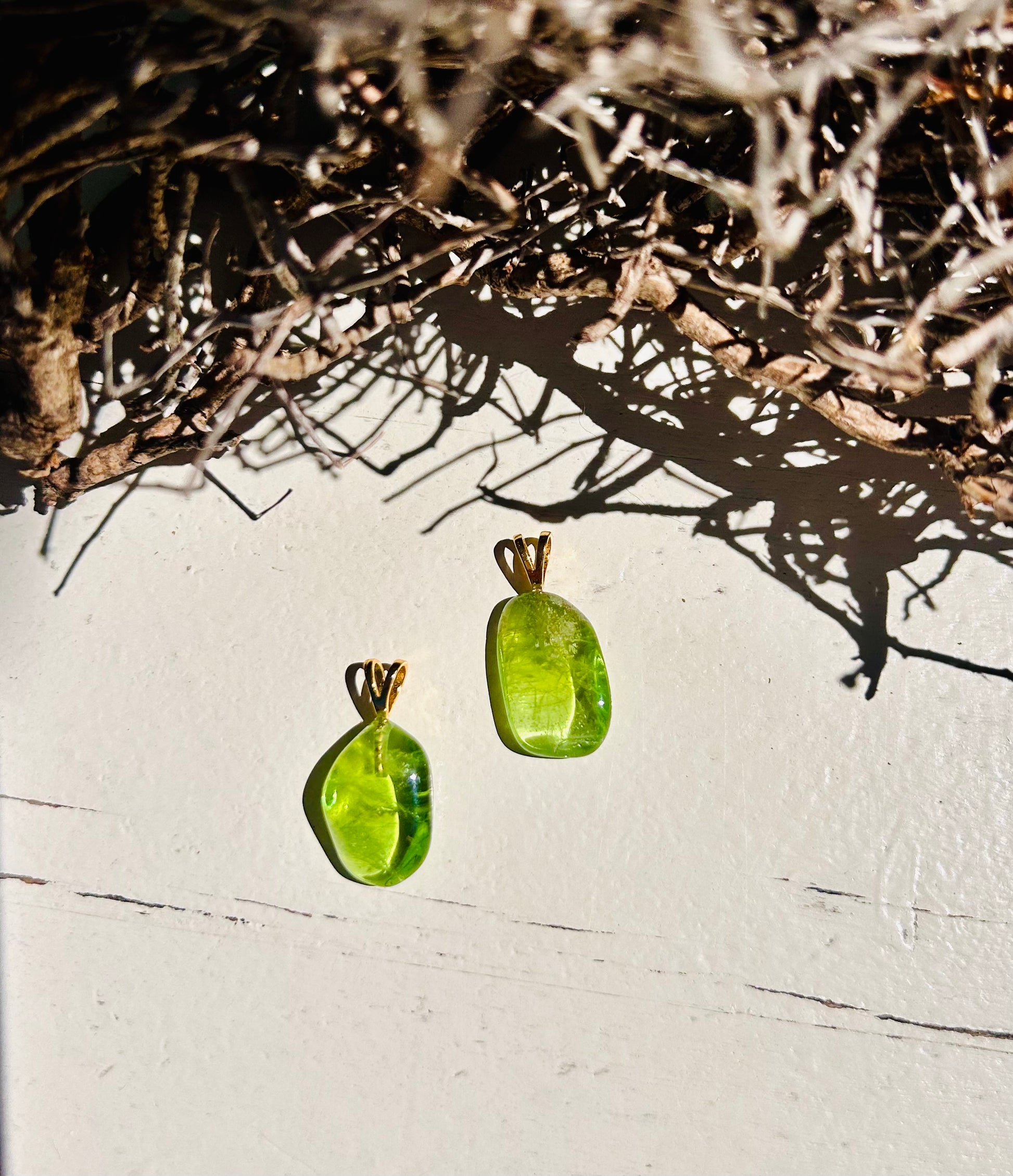 Peridot (Olivin) Anhänger · 1,5–2,5 cm · mit 925 Silberöse oder vergoldeter Öse