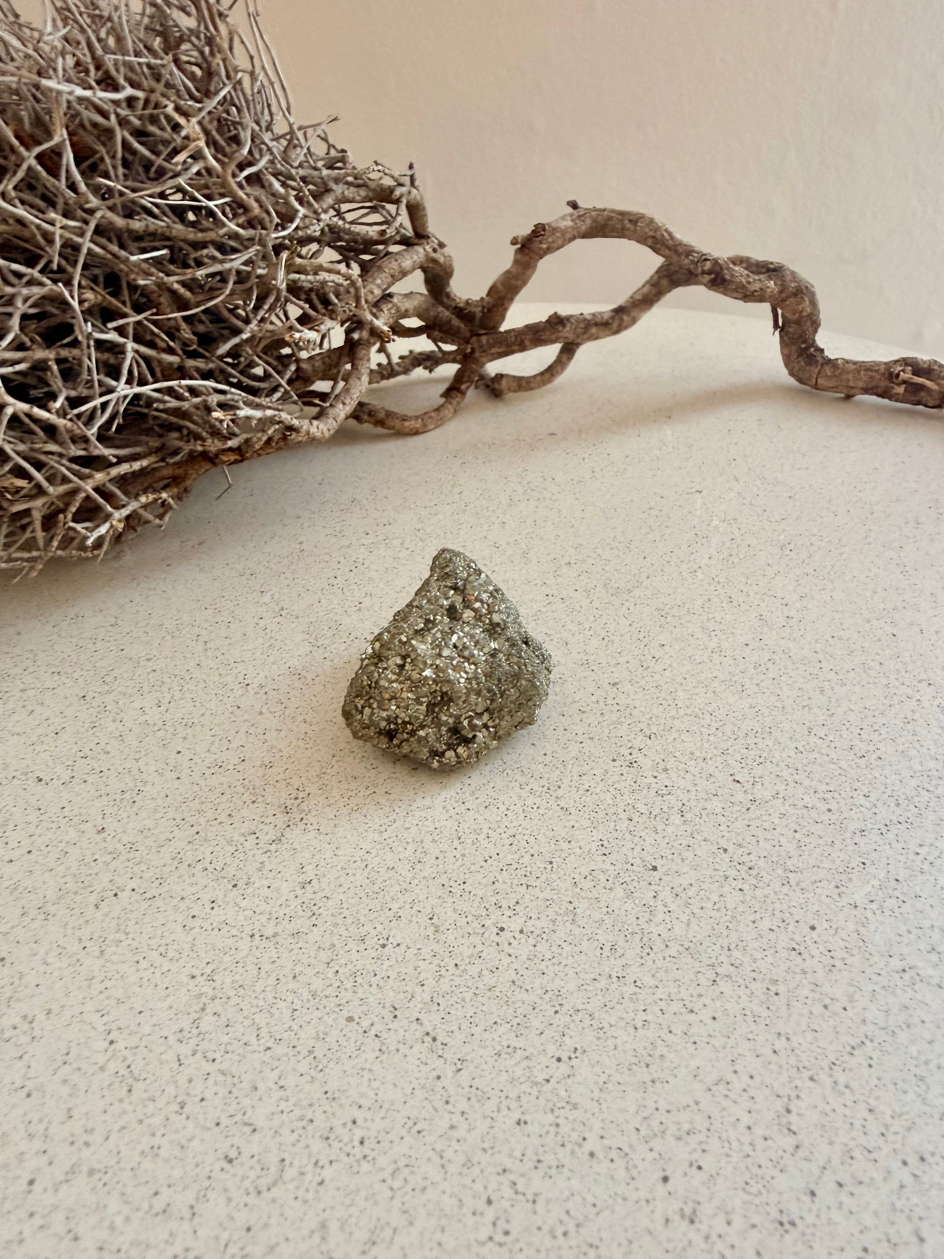 Pyrit wird traditionell mit mentaler Stärke, Fokus und energetischem Schutz verbunden. Viele Menschen nutzen ihn, um Ziele bewusster zu verfolgen, Entscheidungen klarer zu treffen und sich weniger von äußeren Einflüssen verunsichern zu lassen. In Rohform wirkt er besonders ursprünglich und erdend.