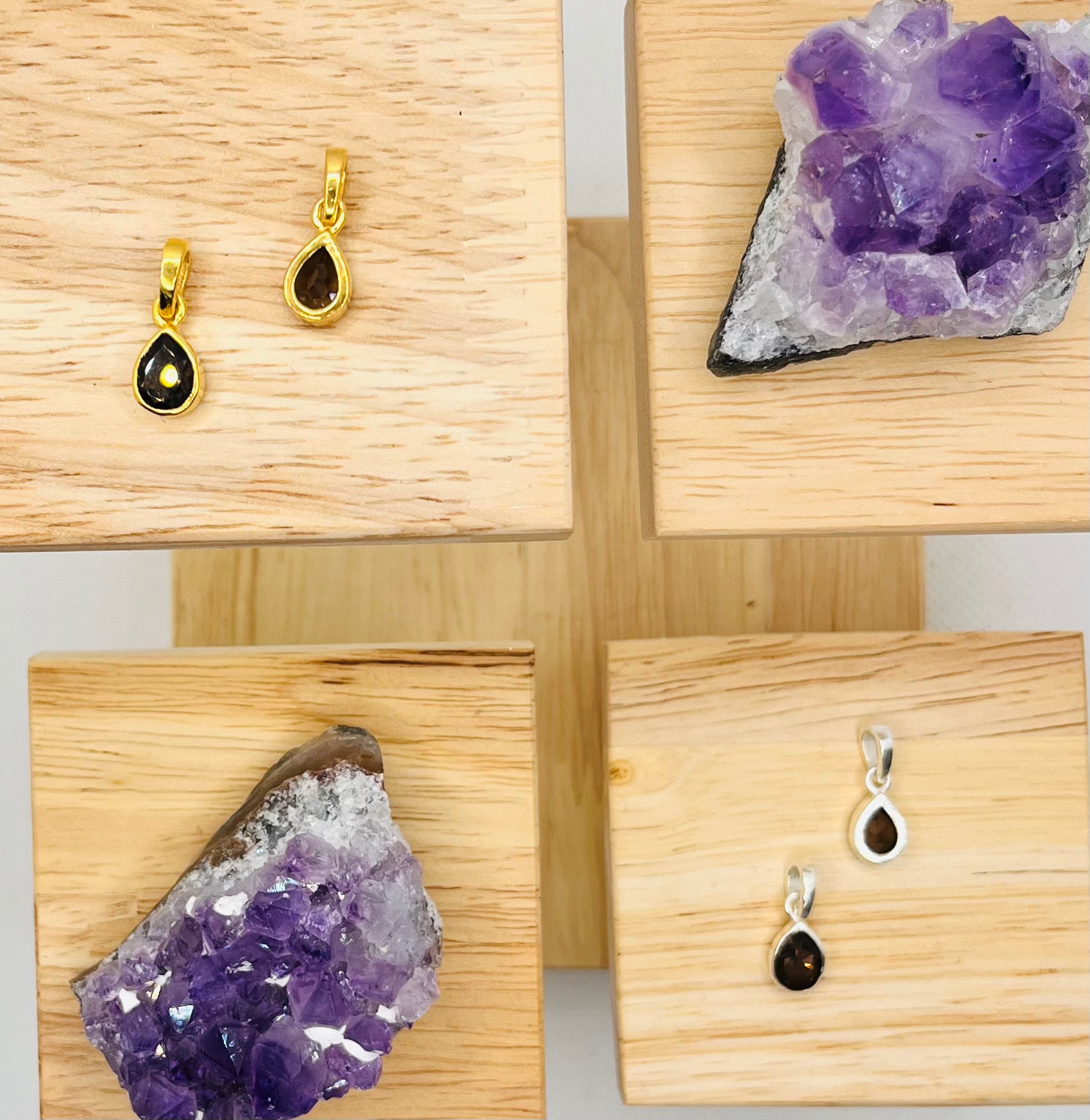 Rauchquarz Anhänger | 925 Silber | 24k vergoldet