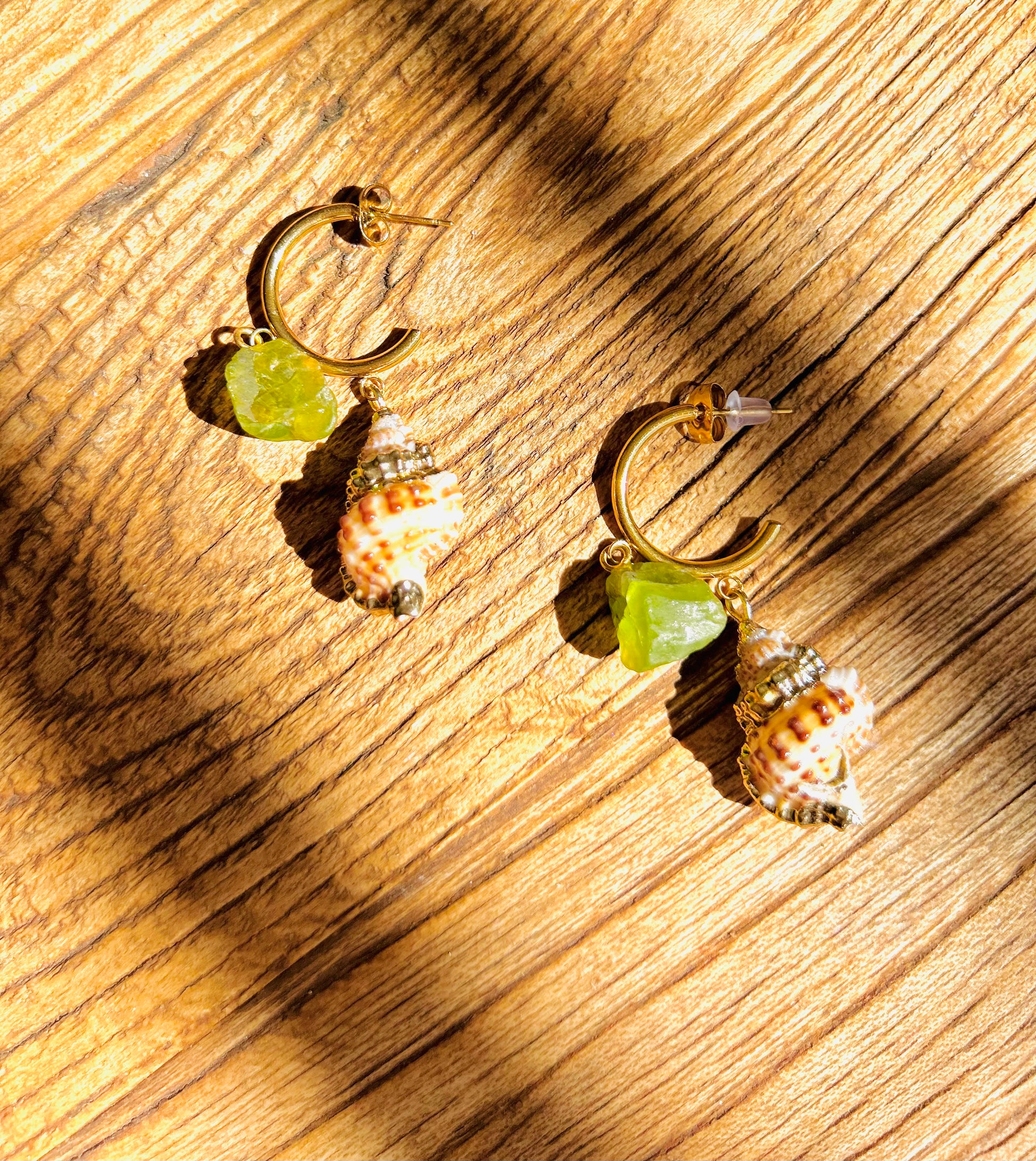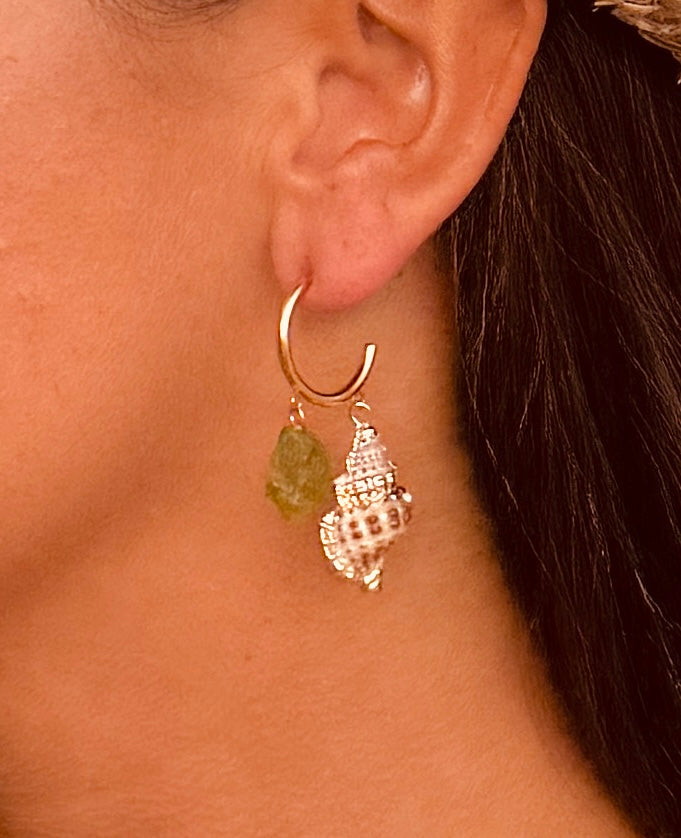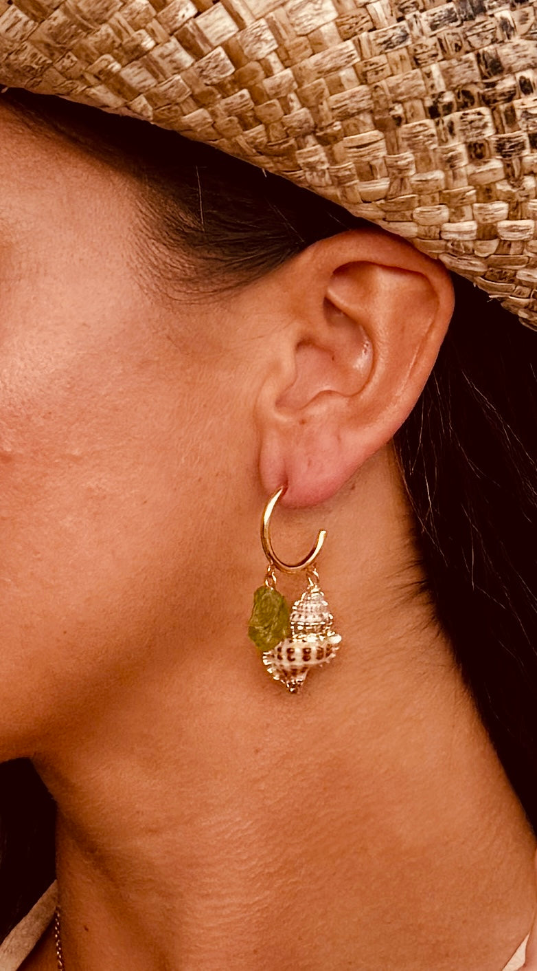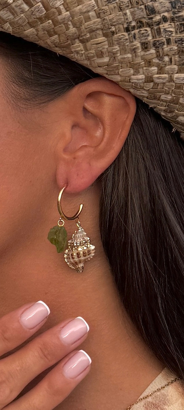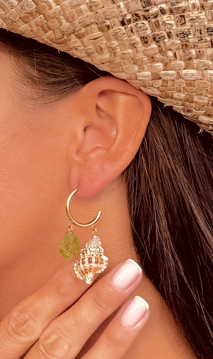 D: Kreolen mit Muscheln & Peridot – ca. 5–6 cm