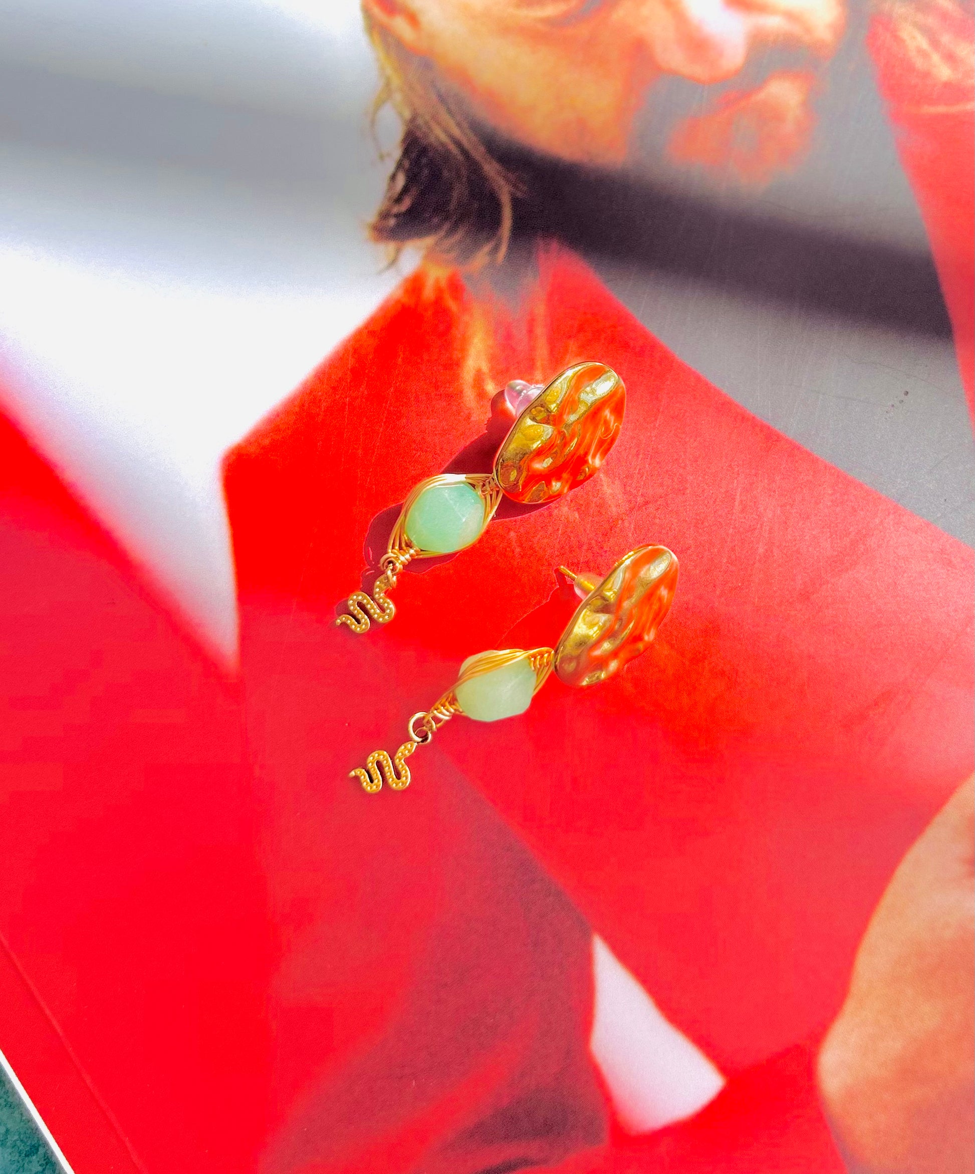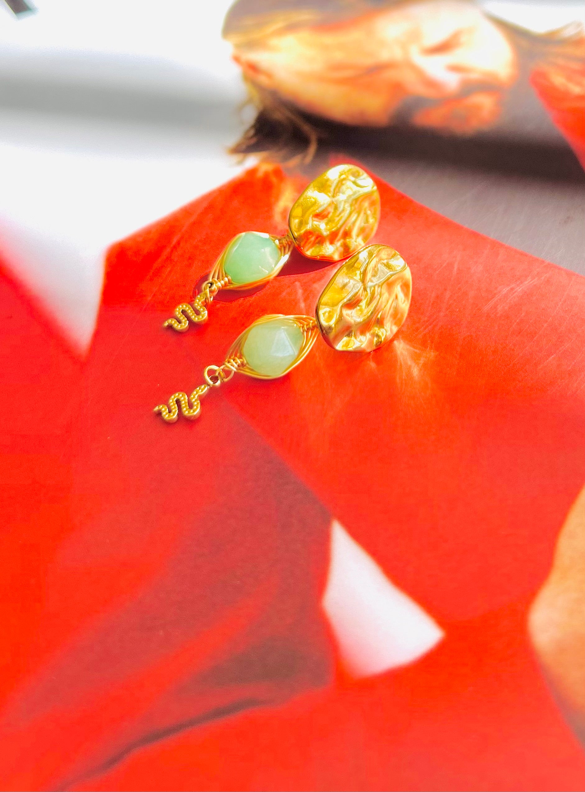 I: Ohrstecker mit Aventurin & Schlange – ca. 5 cm