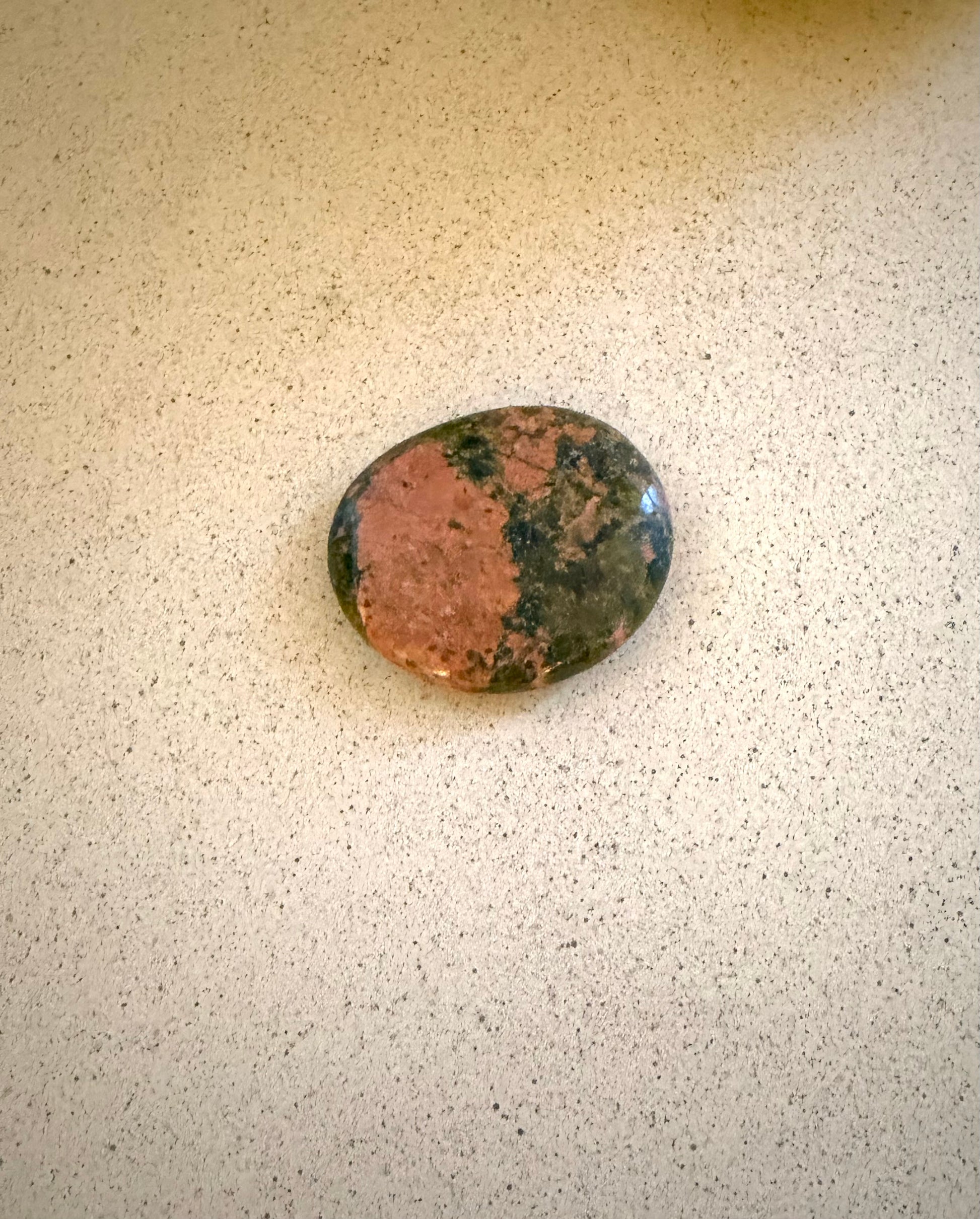 Unakit vereint zwei Kräfte in einem Stein: das belebende Grün des Epidots und das sanfte Rosa des Feldspats. Die Kombination wird seit jeher mit Erdung, Herzenergie und bewusster Präsenz im Hier & Jetzt in Verbindung gebracht. Er wirkt wie ein Balance-Stein zwischen Körper, Emotion und Intuition.